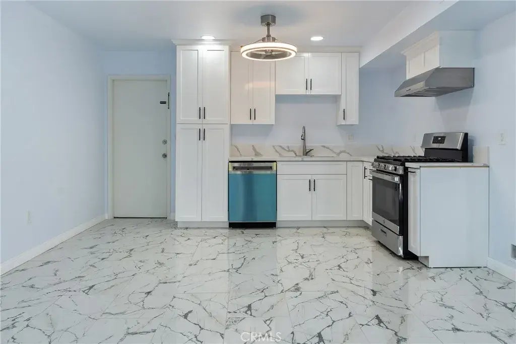 Step into modern elegance with this beautifully remodeled two-story property, designed for both comfort and style. The spacious interior features brand-new flooring and recessed lighting, creating a bright and airy atmosphere throughout. The open-concept living area boasts stunning marble-look tile floors, leading into a contemporary kitchen complete with sleek white cabinetry, stainless steel appliances, and a striking blue accent on the dishwasher. Relax in the spacious bedrooms with large windows that fill the rooms with natural light, and enjoy the remodeled bathroom with its luxurious marble-patterned vanity and modern fixtures. Perfect for entertaining or enjoying quiet evenings, the home also features a large roof deckideal for outdoor gatherings, lounging, or taking in the views. This property combines modern updates with practical living spaces, making it the perfect place to call home.