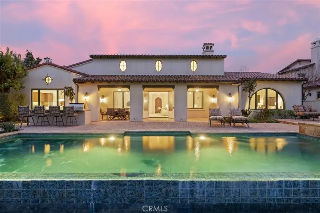 Set in Calabasas most sought after community of The Oaks, this coveted single story estate is located on a quiet Cul De Sac street. As you enter the arched iron gate, you'll be greeted by a pleasant interior courtyard before experiencing the splendor of natural light & enticing views in the grand room which cultivates an open & engaging quality throughout the primary living spaces. The magnificent great room with oversized fireplace & high ceilings flows effortlessly into a formal dining area. This grand gathering space is just off the chef's kitchen, creating a perfect setting for gatherings & extensive entertaining. The dream kitchen boasts top-tier stainless steel appliances, a sprawling center island with seating, a large walk-in pantry, plentiful cabinets & counter space, & a sunlit breakfast nook to take in the expansive views conveniently located just off the outdoor BBQ perfect for entertaining & enjoying the lifestyle you deserve. An extra room with direct courtyard access offers flexibility as an office, library, or gym, Wake to views every morning in the cheerful primary ensuite with high ceilings. The primary bath boasts double vanities, spa tub, separate shower & a graciously sized closet. Three other ensuite bedrooms are centered around an additional living room that opens to the charming courtyard. There is even a bonus room above the entry. Outdoor has its own fireplace, infinity pool with spa & BBQ with bar seating. And the views WOW. Soak in the valleys dancing night lights, watch planes in the distance with panoramic 3D views. The community offers excepti