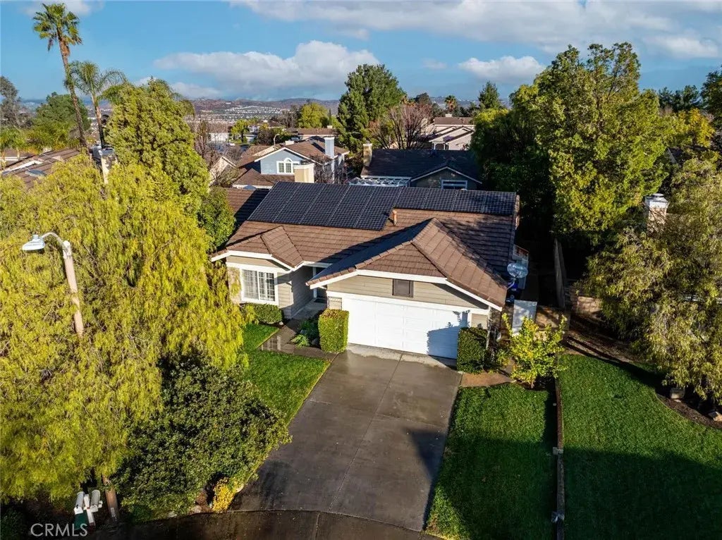 Expanded Country Gate Northbridge Single Story at the end of a cul-de-sac! This 3 +2 has a huge great room addition making this over 1800 sqft! The kitchen has been nicely remodeled with greige cabinetry, glass backsplash, stainless steel appliances and a breakfast nook. The great room addition features freshly painted walls, fireplace, custom built-ins and a wine fridge. The hallway bathroom had a single vanity, tile flooring and step-in shower. The primary suite features two closets, ensuite bathroom and a slider to the gorgeous backyard. There are also two additional bedrooms. Owned Solar. Entertainers Backyard! Private pool and spa, covered patio, grassy area, covered dining area and a side yard. Almost 8,000 sqft lot. The Northbridge community features walking paseos, multiple pools, tennis courts and clubhouse. Low HOA of only 65 monthly and no Mello Roos! Centrally located in the heart of Valencia. The home is located in close proximity to award winning schools, parks, dining and shopping.
