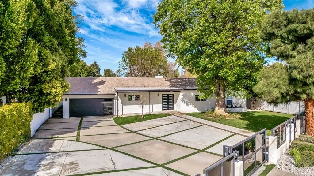 Experience luxurious single-story living in this stunning Walnut Acres' 5.5-bedroom home nestled on a serene, no-through street in the highly sought-after Woodland Hills neighborhood. Situated on an expansive 12,000+ square foot lot, this exceptional residence offers over 3,200 square feet of fully remodeled interior space with a spacious, open floor plan designed for modern living. The newly redesigned kitchen is a chefs dream, featuring granite countertops with a stylish backsplash, custom cabinetry, GE Profile stainless steel appliances, and a generous island perfect for entertaining. The adjoining dining and living areas are enhanced by a patio door leading to a beautifully shaded backyard, creating a seamless indoor-outdoor flow. The primary suite serves as a private retreat, boasting a walk-in closet, fireplace, and a spa-like en-suite bathroom with double sinks, a walk-in shower, and a separate soaking tub. Four additional bedrooms provide ample space for family, guests, or a home office. Outside, the beautifully landscaped backyard offers privacy and tranquility, making it perfect for entertaining. The property includes an attached two-car garage with washer and dryer hookups and a grand driveway with ample parking space. A decorative fence with automatic gates enhances privacy and security. Located in the award-winning El Camino and Hale Charter school district, this home is just minutes from Warner Center, The Calabasas Commons, The Village, and the 101 freeway, offering easy access to premier dining, shopping, and entertainment. Dont miss this incredible opportun