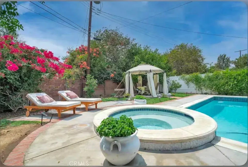 BEST VALUE IN THE AREA! Beautiful pool home available. This stunning property features solar panels to help save on electricity bills and includes all the amenities you need. Enjoy a heated pool, spa, gas fire pit, and gazebo in a private backyard oasis. The home offers 1,754 sq ft of living space, featuring a spacious living room with a fireplace, 3 bedrooms, and 3 bathrooms. PLUS, there is an additional BONUSE ROOM with full bathroom and kitchenette, ideal for a HOME OFFICE, gym, or in-laws suite. Interior features include tile and wood flooring throughout. The kitchen boasts granite countertops, a center island, and stainless steel appliances. A separate laundry room comes equipped with a washer and dryer. All bathrooms are updated with walk-in showers and stylish cabinetry. Conveniently located just minutes from shopping centers and major retailers including Trader Joes, Sprouts, Amazon Fresh, Costco, and more. Note: No garage available it has been converted into an Occupied ADU. However, there is a large, flat driveway for ample parking. Contact us today to schedule a tour, fall in love, and make this your next home!
