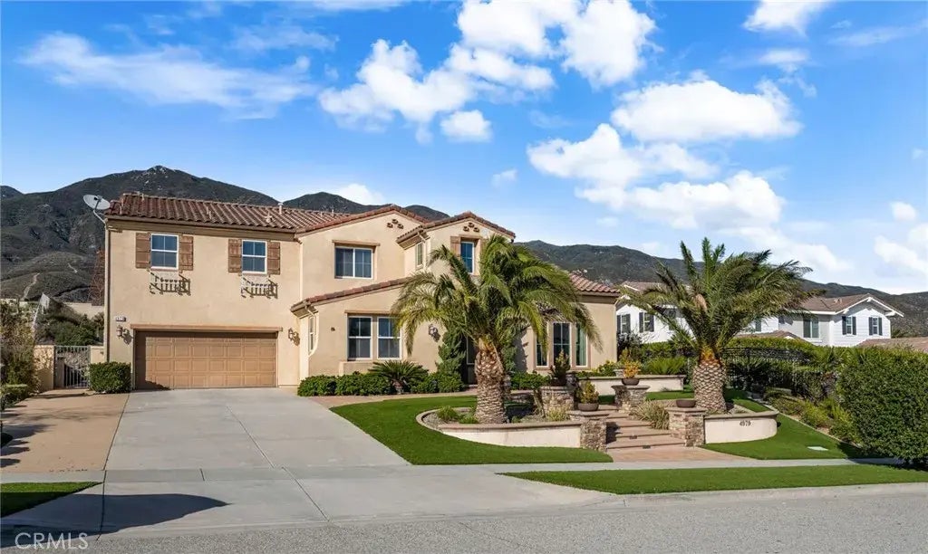 Perched in the prestigious "Whispering Ranch" neighborhood on the Etiwanda side. As soon as you lay eyes on it, you will immediately recognize the true pride of ownership that is "Turn-Key" with its eye catching curb appeal, lush landscaping and hardscape in the front. This estate is a true gem, offering incredible mountain views and boasting a total of 4 generous sized bedrooms, a loft and office, and a total of 3.5 bathrooms spanning across 4,273 square feet of living space. Upon entry you are greeted with polished tile flooring throughout the first floor, a gourmet kitchen including a large center Island and granite counter tops, seating for 4 at the breakfast bar, pendant lighting, stainless steel cooktop and built in stainless steel appliances, an adjacent casual dining area, along with a welcoming family room, a fireplace and stacked stone backsplash. A key feature of this home is the convenience of having an office downstairs that can be used as a 5th bedroom and convenient half bathroom. Equipped with a formal dining room with beautiful chandelier, and living room, You will have more space to entertain guests. Upstairs, you have 4 bedrooms, a giant loft, and 3 full bathrooms. Laminate flooring is throughout the second floor and on the staircase. Natural lighting pours in from a multitude of windows with amazing views of the San Gabriel Mountains. The expansive primary suite offers stunning views through large picture windows. The primary bathroom features tile floors, a spacious stand-up shower, a separate soaking tub, and a large walk-in closet with tile floors as
