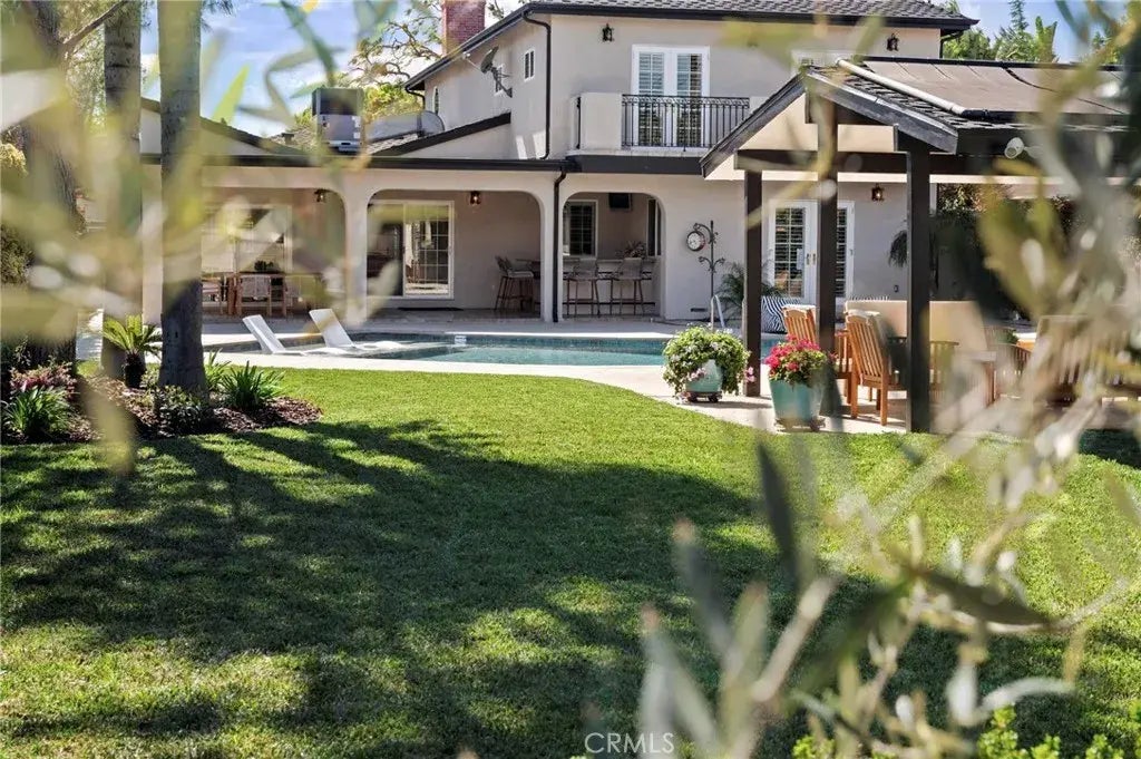 Introducing a timeless gem in the prestigious Hillview Park Estates, a stunning two-story home sits on a sprawling 14,880 sqft lot. Offering 3,560 sqft of living space, this rare find in Valley Glen, bordering Sherman Oaks, provides a unique opportunity in a neighborhood where homes are seldom available. In the past 3 years, 10 properties have sold in this highly desirable area, making this home even more special. Upon entry, you're greeted by a formal living room, followed by a large family room and dining area adjacent to an updated kitchen featuring premium Caf appliances. The home offers timeless charm with crown molding, wood shutters, and cozy fireplace. Also, there's a versatile office/game room for work or leisure. The home features four bedrooms and three bathrooms, with the entire second floor dedicated to the luxurious primary suite. Spanning 504 sqft, the suite includes dual walk-in closets, a spa-inspired bathroom with a Jacuzzi tub and walk-in shower, and two sets of French doors leading to a private balcony overlooking the large pool. Step outside to a covered patio with a wet bar perfect for outdoor dining, and enjoy the newly replastered, oversized solar-heated pool, complete with a Baja shelf for lounging. The 620 sqft guest house consists of a bedroom, bathroom, kitchenette, and flexible living space. Completely remodeled in 2008, the home boasts modernized electrical and plumbing systems, seismically retrofitted, and a second story that enhances living space. Recent upgrades include a new heating/cooling system, tankless water heater, energy-efficient ra