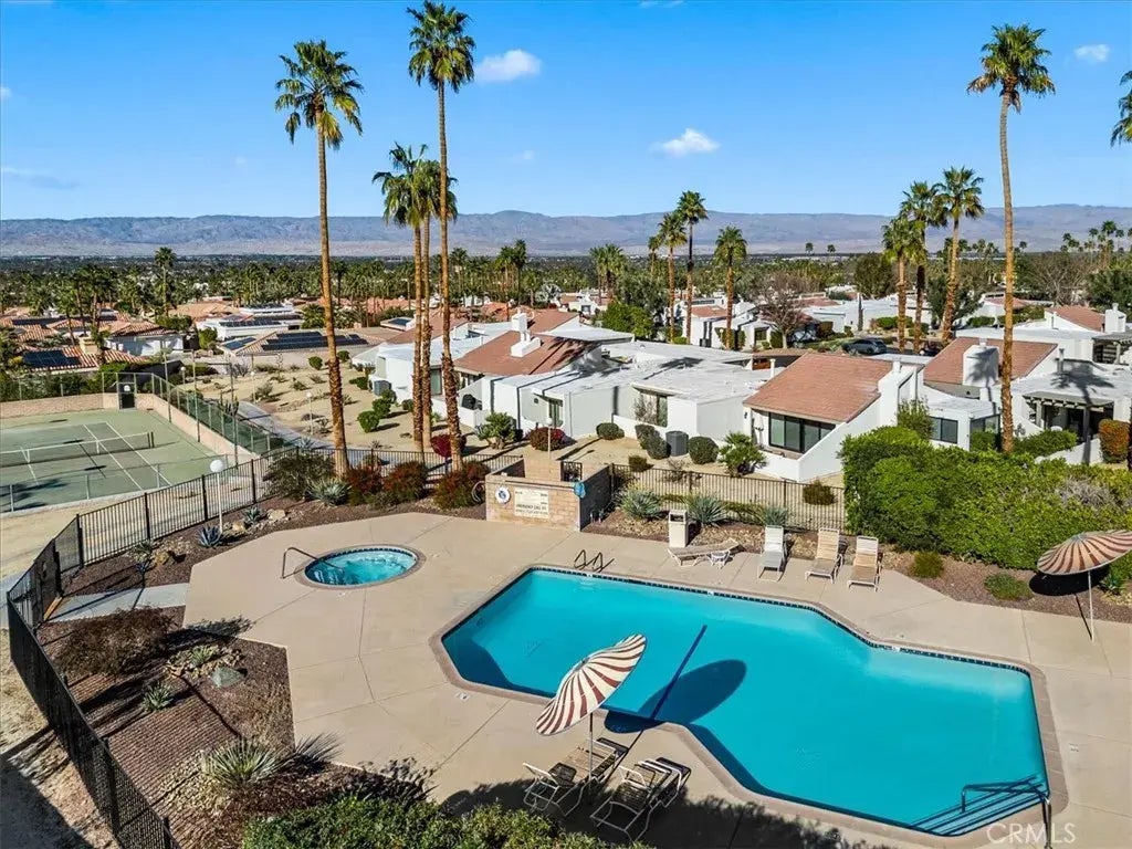 Dont miss this sought after 3 bedroom, 2 bath unit in the architecturally significant Kings Point Villas complex in South Palm Desert. Mid-century modern enthusiasts jump to the front of the line so you can finally boast, I live in a Hugh Kaptur! This units design is the largest, and was considered a state of the art, luxury condo when completed in 1979, featuring clerestory windows atop vaulted ceilings, ample storage, and modern design. Delivered turnkey furnished, this home boasts 3 bedrooms, including the spacious primary suite with updated bath, second full bath, in-unit laundry, central courtyard, oversized, finished, 2 car garage with 220V nema plug ready for EV charger, fireplace, and three private patios, this unit provides privacy and space situated on 14 gorgeously landscaped acres with only 66 units in total. Location? Yes. Golf cart down to El Paseo for lunch in minutes after playing a round of pickle ball or tennis on one of the two courts, then head over to the hot tub for a soak and a swim in the seasonally heated pool. Views? Yes. Enjoy mountain views of the sunset from the patio, then head to the courtyard for Al Fresco dining under the stars. Dont miss this opportunity to own a piece of local architectural history!