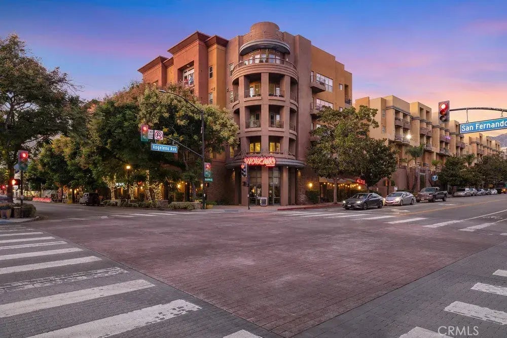 Experience luxury living in this exclusive single-story condo in the desirable Burbank Village Walk. This exceptional two-bedroom, two-bathroom residence features soaring 9-foot ceilings and an open floor plan, creating a bright and airy atmosphere. A welcoming hallway leads to the kitchen and living room area. The upgraded kitchen, complete with a newly installed elegant backsplash, an island, and stainless steel appliances, is enhanced by recessed lighting that elevates the ambiance.Upgraded vinyl flooring and designer touches throughout the home must be seen to be appreciated. The spacious primary bedroom serves as a serene retreat, complete with an attached bathroom featuring a shower, a separate tub, and a walk-in closet. The living room and patio will be your favourt spot to enjoy and relax! The French doors from the living room lead to the private patio, seamlessly blending indoor and outdoor living. Enjoy the oversized private patio that overlooks the grand outdoor terrace with a fireplacetruly a rare find! Additional highlights include an in-unit stacked laundry unit, a tankless water heater (replaced in 2022), upgraded AC and heating (also replaced in 2022), and two side-by-side assigned subterranean parking spaces. Nestled in the heart of Downtown Burbank, this residence offers unparalleled convenience, with shopping, dining, entertainment, and cultural experiences just steps away. This peaceful retreat is within walking distance to the Saturday farmers market, Burbank Town Center, AMC theaters, vibrant restaurants, bars, and shopping. Community amenities include