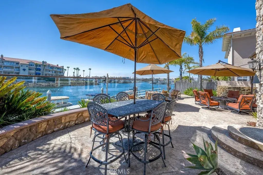 This stunning Waterfront Home fully furnished in Westport at Mandalay Bay is the epitome of sophistication and boasts four bedrooms, three and a half bathrooms, plus library/office and 3,440 sq. ft. of luxurious living space. Enter through custom iron gate into a tranquil courtyard with fountain, setting the stage for the homes south-facing, unobstructed harbor view. Upon entering, you're greeted by a spacious foyer with an open floor plan that seamlessly connects the main living area along with the elevator that makes accessing both levels of the home effortlessly. The main living area is designed for entertaining, featuring a gourmet kitchen, large granite island along with top-of-the-line stainless steel appliances such as the Wolf Range/Oven, Sub-Zero Refrigerator, dishwasher, trash compactor, microwave and an additional built-in oven. The adjoining dining area with fireplace leads directly to the backyard overlooking the marina and 45' boat dock. For the wine enthusiast enter through the double wood and iron doors that is exquisitely crafted as you enter the refrigerated wine cellar/tasting room that holds more that 800 bottle of wine. Another appointment is the elegant granite top wet bar with wood and glass display cabinets, built-in television, refrigerator, ice maker and sink. The living room with soaring ceiling, fireplace, custom built-in cabinetry and French doors leads to the yard and harbor view. The primary suite offers stunning views of the harbor and features a built-in coffee and wet snack bar, automated window treatments, and a custom TV cabinet. The spa-