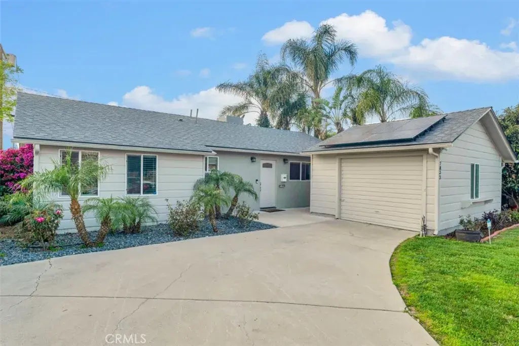 Nestled in a quaint Northridge neighborhood and within the highly rated Cleveland High School boundaries, this stunning 3-bedroom, 2.5-bathroom home offers nearly 1,600 sq ft of thoughtfully designed living space on a generous 6,000+ sq ft lot. Showcasing a modern open floorplan with high ceilings, recessed lighting, and high-end flooring throughout. Recent upgrades include a new roof and HVAC system as of 2024, along with a brand-new water heater installed in February 2025. Additionally, the home is equipped with owned solar panels, providing energy efficiency and long-term savings. The spacious living and dining area offer French doors access to the backyard retreat featuring a pergola-covered patio with mosaic pattern brick flooring overlooking a lush lawn adorned with mature fruit trees and vibrant foliage. The great room provides an inviting and seamless flow into the sophisticated kitchen, complete with a large center island, ample storage, sleek quartz countertops with matching glass tile backsplash, and stainless-steel appliances. Just off the kitchen, direct access to the attached garage with a laundry area enhances convenience. A stylish powder room off the entry is perfect for guests. The center hall leads to three well-appointed bedrooms, highlighted by a serene primary suite with an updated en-suite bathroom. The two secondary bedrooms both feature walk-in closets and share a tastefully updated Jack and Jill full bathroom. This exceptional home blends contemporary design with everyday comfort, offering an ideal setting for both relaxation and entertaining in a