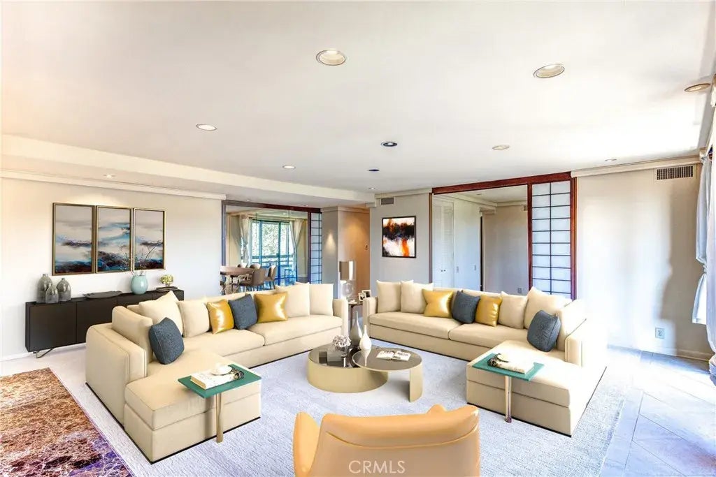 Located in an elite gated enclave along the sought-after Orange Grove corridor, this exquisite townhouse is graced with its very own elevator servicing every floor. Designed by the acclaimed architect Bob Ray Offenhauser, the property has undergone a transformation that showcases unmatched craftsmanship and the use of premium materials. The refined color palette, coupled with skylights and strategically placed recessed spotlights, creates a luminous ambiance perfect for art enthusiasts. The generous proportions of the dining and living spaces are further enhanced by the addition of balconies, which not only broaden the sense of space but also offer serene views of the surrounding greenery. The homes layout, designed with sociability in mind, boasts a standout feature for wine loversa dedicated wine room with a capacity to store over 1,000 bottles. This impeccably presented home features two bedrooms, with a third space ingeniously converted into a multi-purpose den/home office, perfect for modern work or leisure needs, and 2.5 tastefully appointed bathrooms. The kitchen and bathrooms are finished with granite countertops that add a touch of elegance. The living room, a focal point of the home, features a magnificent marble fireplace, exquisite custom moldings, and recessed lighting, set against a backdrop of marble, carpet, and hardwood flooring. Ease of living is enhanced by the direct elevator access from the home's social areas to a generously sized private 2-car garage, which also houses laundry amenities and extra wine storage. With extensive built-in storage solutions
