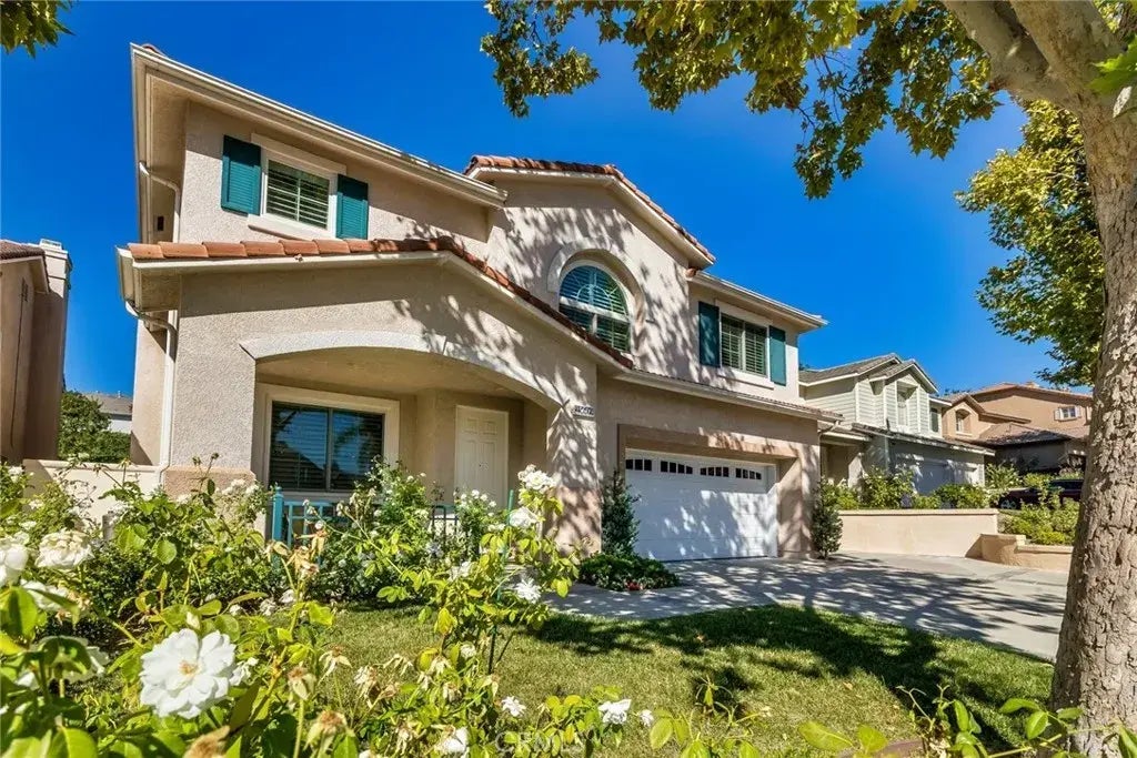 Welcome to this gorgeous Executive home and discover elevated living in this 5-bedroom, 3-bath home nestled in the Oak Terrace tract at the top of Stevenson Ranch. Offering stunning curb appeal and nearly 2,900 sq. ft. of open-concept living, this home perfectly blends traditional style with timeless esthetics. Step inside to find inviting paint selections, plantation shutters, new windows, and a new HVAC system. The formal living and dining room is generous in size and is complimented by a lovely chandelier. The gourmet kitchen features a large center island, tons of cabinetry, granite countertops, coordinating appliances, and a walk in pantry. The kitchen flows seamlessly into the spacious great room accented by a cozy fireplace and incredible views with access to the beautiful backyard... absolutely perfect for entertaining! Don't miss the downstairs bedroom fantastic for an in home office or for guests, and is conveniently adjacent to the 3/4 bath. Upstairs, retreat to the huge Primary Suite with panoramic backyard views, an enormous walk-in closet/dressing room, and a spa-like bath. The ensuite bath features a soaking tub, walk-in shower, dual vanity with tiled counters, and a makeup station. Additionally you will find generously sized secondary bedrooms with ample closet space and views of the neighborhood. The hall bath has a double vanity and shower/ tub combo. Enjoy a huge loft perfect for a library, office or theater area. The upstairs laundry room has abundant storage, counter space and large sink. Don't miss the modern upgrades such as the newer water heater, ov