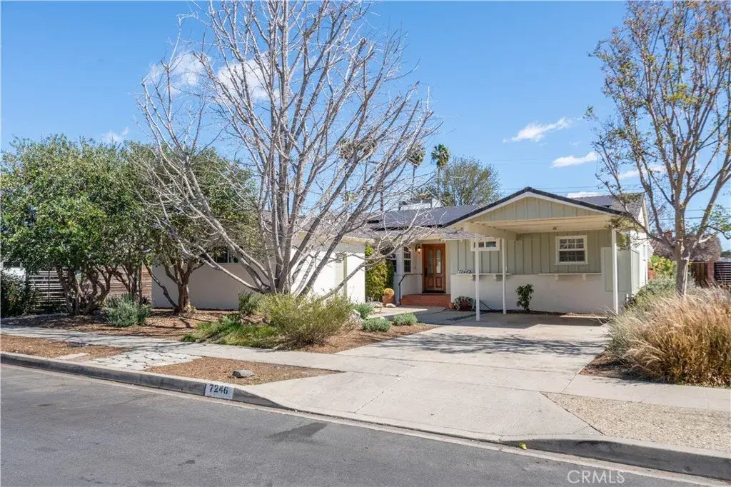 This beautiful home in nestled on a picturesque tree lined cul-de-sac in one of Winnetkas most sought-after family neighborhoods, and as soon as you lay your eyes on it youll immediately recognize the owners true Pride-Of-Ownership. Here are just a few of its many other fine features: Its drought tolerant landscaping and freshly painted exterior and interior enhance its eye-catching curb appeal. The elegant custom front door with lead glass inserts swings open to a freshly painted 1,860 square foot open concept floor plan that is in Move-In-Condition with an aesthetic blend of wood, tile, and plush carpet flooring. The spacious living room is bathed in natural light and has a wood-burning floor-to-ceiling brick fireplace with gas starter. The familys cook is going to truly appreciate the kitchens recessed lighting, garden window, abundant cabinets, ample granite counters with full tile back-splash, durable dual basin stainless steel sink, built-in stainless-steel appliances, glass top electric range with warming zone, stainless steel refrigerator, plus the convenience of the adjoining dining area with its huge garden window and direct patio access. 4 spacious bedrooms, A total of 1 bathrooms: BONUS! The garage has been converted into permitted living space that can be used as a 5th bedroom, office, or recreation room. Washer and dryer are staying in the functionally located laundry area. The energy efficient dual pane windows and paid for leased solar panels will help keep your utility bills low, Central air and heat for year-round comfort. Youre going to appreciate and enj