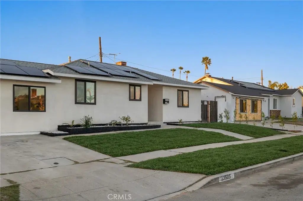 If you are looking for a nearly BRAND-NEW house with a JR ADU for passive income, this is the home you don't want to miss! Welcome to this stunning 3-bedroom, 2-bathroom house spanning 1,381 square feet, plus a 1-bedroom, 1-bath 444 sq ft brand new 2025-built JR ADU, offering elegant living space situated in a desirable pocket of Arleta. As you step inside through the custom door, you are greeted by an open floor plan that seamlessly connects the living and kitchen areas, making it perfect for both daily living and entertaining. The spacious living and kitchen areas feature impressive vinyl flooring that adds a touch of sophistication and makes maintenance a breeze. The custom kitchen offers plenty of cabinetry complemented by brand-new appliances. The bedrooms are filled with natural light, and laminate flooring runs throughout the rest of the home, enhanced by recessed lighting that illuminates the space beautifully. The JR ADU is highly functional, with every inch being usable. It offers an in-unit laundry area, a stand-in shower, a tankless water heater, and has its own address: 13507 Muscatine. Outside, you will find a cozy backyard, a patio, and plenty of greenery. Wait, theres more: the solar panel is fully paid off. The seller has invested significantly in making this home impeccable for its next owner. Everything is updated: roof, plumbing, electrical, A/C, doors, windows, bathrooms, kitchen, tankless water heater, and so much more. You must see it to truly appreciate it!