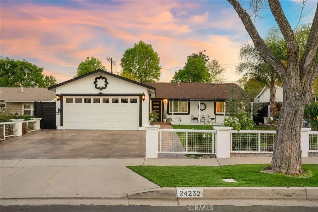 Tucked away on a charming street in the heart of Woodland Hills, this beautifully renovated home seamlessly combines modern luxury with comfort. As you step inside, you'll immediately be greeted by an abundance of natural light flowing through expansive windows and french doors. The open-concept layout effortlessly connects the kitchen, living room, and dining areas to the outdoor space, creating an ideal setting for both everyday living and entertaining. The spacious primary suite serves as a peaceful retreat, featuring high ceilings, a cozy fireplace, ample closet space, and a stylish en-suite bathroom complete with a soaking tub, walk-in shower, and elegant vanity. Additionally, the home boasts three generously sized bedrooms, offering comfort and flexibilityperfect for family, guests, or even a home office to accommodate your lifestyle. Step outside to discover a thoughtfully designed backyard that invites both relaxation and social gatherings. With multiple covered seating areas, an outdoor fireplace, and low-maintenance turf, the space is perfect for hosting friends and family. The landscaping is designed to complement the home's charm, creating a welcoming atmosphere for all occasions. In addition, the front yard features a large grassy area surrounded by beautiful landscaping, fruit trees, and palm trees, enhancing the homes curb appeal and offering a serene outdoor space. Additional highlights include a large attached two-car garage, an expansive driveway with ample parking, and a prime location within the highly sought-after El Camino School District, as well as p