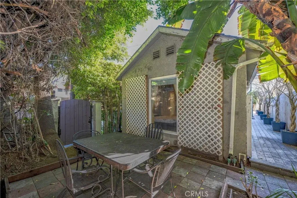 Charming 1923 Bungalow with Private Courtyard & Finished Attic Retreat. Nestled behind lush hedges and a gated entry, this enchanting 3-bedroom, 2.75-bath home offers a perfect blend of vintage charm and modern convenience. A wooden gate opens to a private courtyard, an inviting outdoor sanctuary ideal for relaxing, entertaining, or al fresco dining. Inside, the open-concept living and dining area boasts a beamed ceiling, arch doorway, and French doors that bring in natural light. The well-equipped kitchen includes a stove, refrigerator, dishwasher, and microwave, while an indoor stackable washer/dryer adds everyday convenience. Ceiling fans enhance comfort throughout the home. A unique finished attic space with a bath and private deck provides a versatile retreatperfect as a guest room, office, or creative studio. Step onto the outdoor deck for sun lounging by day or stargazing at night. The property also features a gated driveway with parking for two cars, ensuring both privacy and convenience. Located near Franklin Village shopping, dining, and Hollywoods vibrant nightlife, this home is a rare find in an unbeatable location.