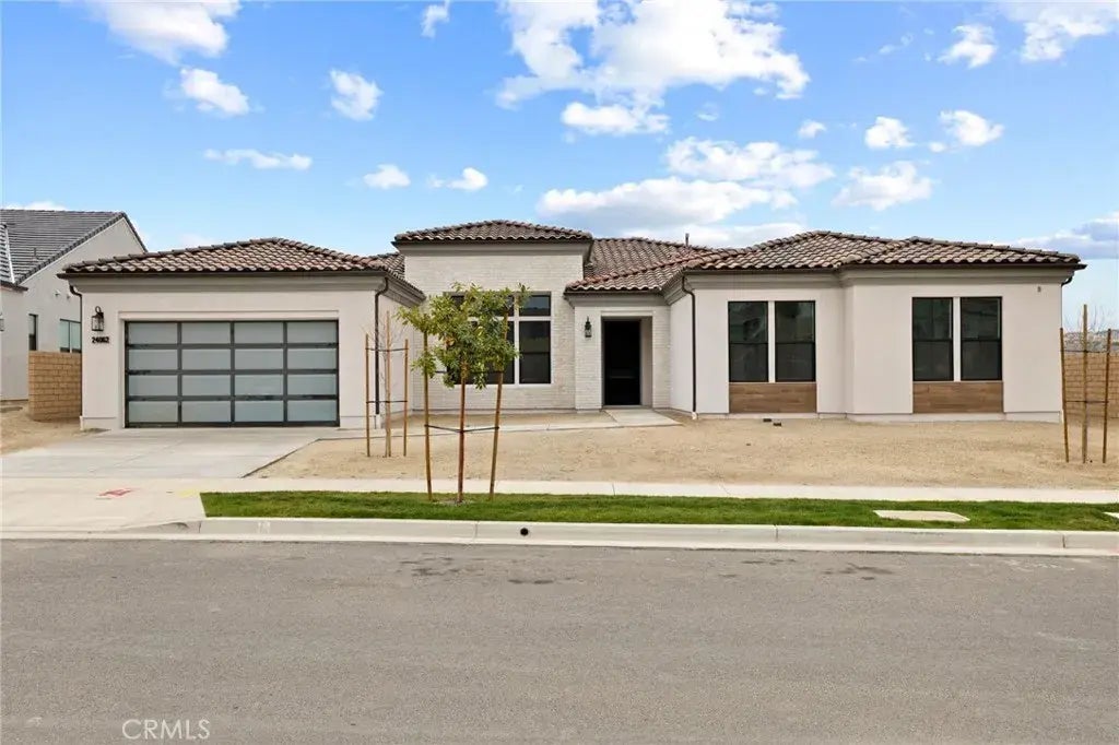Welcome to 24062 W Corte Arido, a move-in ready Spanish Contemporary Astra situated on a cul-de-sac f only 3 homes, on a corner homesite offering immense privacy for it's future homebuyer. Upon entering this home, you are welcomed by 12" ceilings, and upgraded a warm Provenza Concorde Oak LVP, leading into the great and kitchen. This home is fitted with some incredible features including a 90 Degree Stacking door, opening up to the Outdoor Living Area, and a 60 " Linear Fireplace in The Great Room. The craftsman cabinets are complimented by Matte Black Hardware and white Zuri Quartz countertops. The primary bedroom offers natural light all throughout the day, with a luxurious primary bathroom fitted with 12 x 24 White Emser Sterlina II Polished Tile on the shower walls and a ceiling mounted showerhead.