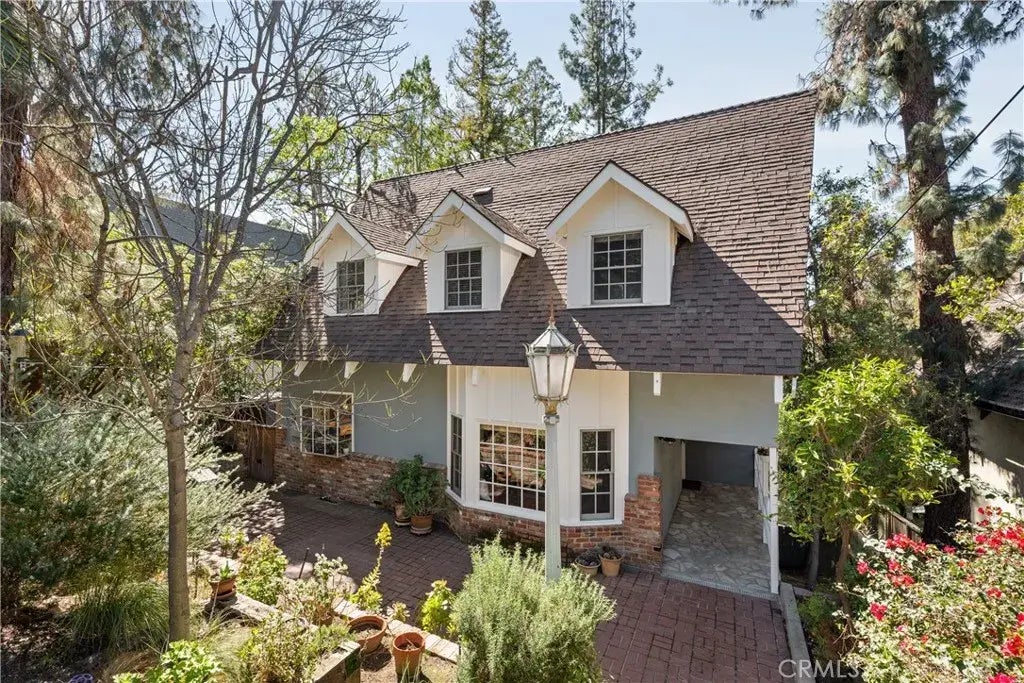 Discover a hidden masterpiece in the coveted Woodland Hills Country Club neighborhood. This A-frame beauty is a once-in-a-lifetime find in Los Angeles! Tucked below street level for ultimate privacy and surrounded by towering trees, this home feels like a secluded retreat, yet its just steps away from expansive open lands with endless hiking and biking trails. Picture yourself hosting unforgettable gatherings in the expansive front courtyard, framed by lush, impeccable landscaping, or stepping inside to soaring ceilings that elevate every moment. The living room is a showstopperbathed in natural light, warmed by a brick fireplace, and finished with gleaming hardwood floors. Its towering ceiling opens to a deck with a retractable awning, perfect for sunset cocktails or morning coffee with a view. The heart of the home flows effortlessly into a dining room, where a table for eight awaits your next family feast, just off a charming country kitchen brimming with character. A convenient laundry/storage room keeps life organized, while the primary bedroom offers a serene escape with generous closet space and its own private deckanother shaded haven under a retractable awning. The reimagined bathroom dazzles with a massive shower, modern fixtures, and exquisite materials, blending luxury with timeless appeal. Upstairs, an open hallway doubles as a lofted workspace, leading to two spacious bedrooms with vaulted ceilingsone ready for your custom closet designand a delightful Jack-and-Jill bath featuring a clawfoot tub with a showerhead, dripping in vintage charm. Outside, the rear y