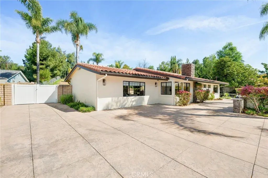 Welcome to an extraordinary property that has undergone a remarkable transformation, seamlessly blending modern luxury with endless potential on an huge lot! Nestled on a stunning acre+ parcel in the enchanting Starlight Rancho Tract of Thousand Oaks, this beautifully remodeled one-story California transitional home redefines comfortable living. Completely designer renovated over the last two years, this residence features a newer roof, HVAC system, updated plumbing, and upgraded electrical wiring. Step inside to discover smooth new drywall, contemporary lighting, and exquisite finishes throughout, all complemented by an open layout that radiates warmth and sophisticated design. At the heart of the home lies a chefs dream kitchen, equipped with top-of-the-line Thermador appliances, including a 6-burner stove with pot filler, a custom range hood, built-in custom panel refrigerator, and a beautifully designed pantry. The kitchen is anchored by a stunning quartzite stone island that offers ample seating, storage, and a wine fridge, making it perfect for entertaining guests. New hardwood floors, stylish interior doors, and elegantly designed bathrooms enhance the overall aesthetic. The thoughtfully converted garage adds valuable space to the new living room, creating an inviting atmosphere filled with natural light from the numerous windows and sliding doors throughout. Venture outside to find impressive 22 wide RV access with a convenient driveway leading through the gates up to the end of the lot. This massive yard provides ample space for endless ideas. Already the backyard