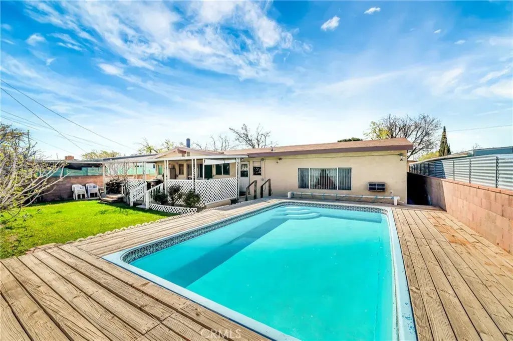 Beautifully Updated Single-Story Home with Private Suite & Sparkling Pool! Welcome to this Stunning 4-Bedroom, 3-Bathroom Pool Home Offering 1,781 sq ft of Thoughtfully Designed Living Space. Blending Modern Charm with Flexible Functionality, this Home Features a Spacious, Updated Kitchen Ideal for Cooking and Gathering, and an Oversized Living Room Complete with a Cozy Pot Belly StovePerfect for Relaxing Evenings. The Private 4th Bedroom Functions as its Own Suite, Featuring a Separate Living Area and Both Interior and Exterior EntrancesPerfect for Guests, In-Laws, or a Private Home Office. Step Outside to Enjoy Sunny California Days in Your Backyard Oasis with a Sparkling Pool, a Covered Patio for Entertaining, and Mature Fruit Trees. Surrounded by Block Walls for added Privacy, this Home Offers the Perfect Balance of Comfort, Style, and Versatility.