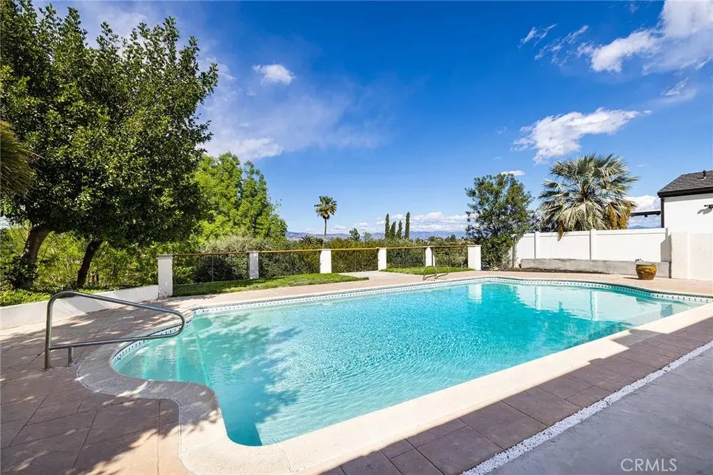 A Reimagined 4 bedroom single story Mid Century home designed by the famous architect, Charles Du Bois. This VIEW home with a pool is nestled in a sought after enclave of homes in Woodland Hills boarding Calabasas and Hidden Hills! An Exceptional Cul-de-sac location on a 11,000+ sq ft lot. Completely Updated with a brand new kitchen and 2.5 new baths. All new appliances included! Vaulted beamed ceilings in the living area. Landscaping has been updated with city views and pool. Plus a brand new roof! The sunsets are glorious! Ready to move into! One bedroom in the front of the home is being used as an office and has a separate entrance to the side yard. Easy access to shopping, dining and the best schools in the area. Easy to see. Don't hesitate too long or it will be gone!