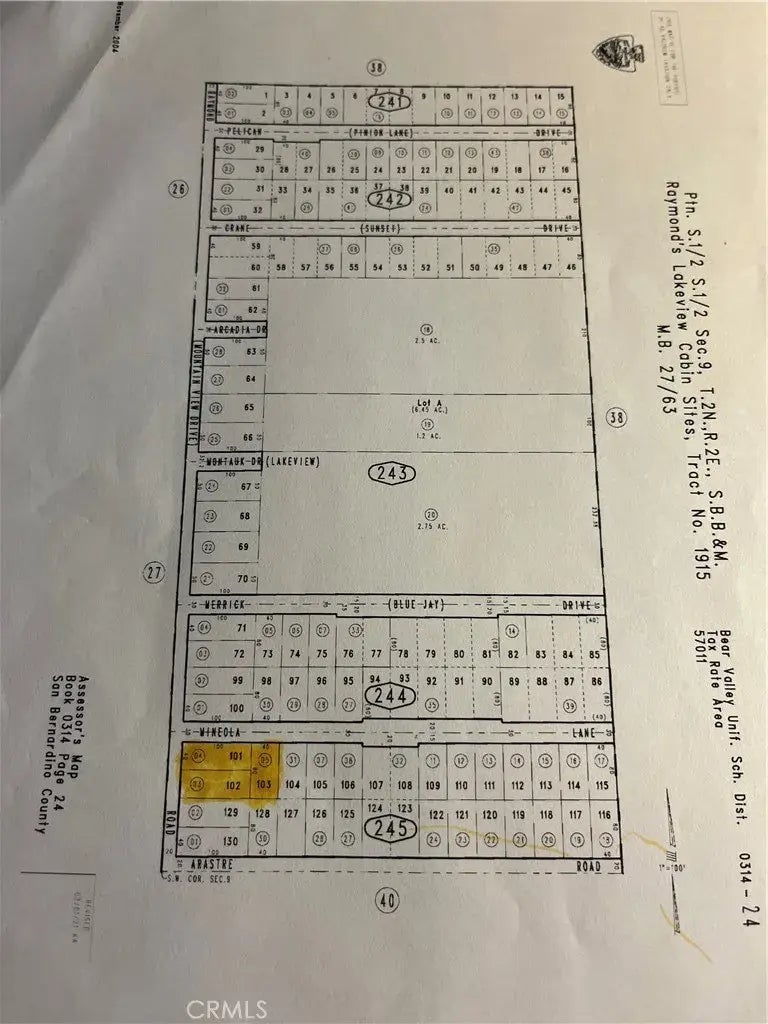 Big Bear City Cabin sites. Great opportunity to have a large lot or build out three cabins on three parcels. Easy access close to all.Being closer to the high desert area than the rest of the Big Bear Lake Valley, Baldwin Lake has beautiful and unique local vegetation that line the local trails nearby, such as sage, pinion, and juniper during the warmer months of the year. Perfect place to make your dream home or vacation get a a way. Close to Big Bear's winter wonderland.Snow play, skiing and snowboarding close by.3 lots all together with 11,200 sq. ft. Buyer to do own investigation regarding building permits & requirements.