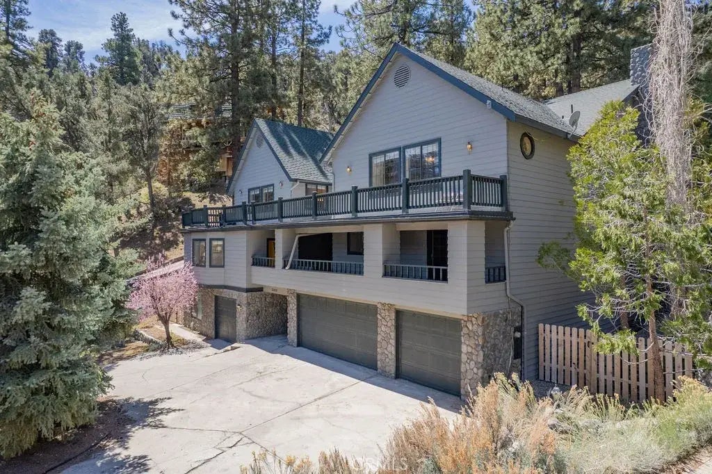 New Price for one of the largest mountain homes in the area! Enter into this spacious and gracious home and you'll find a large light and bright living area with a soaring ceiling, a stone fireplace and multiple seating areas. Next tour the huge kitchen with a large island and stainless steel appliances ready to prepare a feast for a dozen or more. The 8-burner stainless steel stove is set into expansive shining stone counters, along with 2 ovens, a built-in microwave and an enormous refrigerator, a large pantry and loads of cabinets to hold supplies for a crowd. The slate floor brings a rustic mountain ambiance, continuing the use of natural materials throughout the home. The dining room is charming with it's own fireplace and wood mantel which lend a traditional feel and warmth to the room. Continuing on the main level, there is a laundry room with sink and storage closets and a half bath with updated traditional vanity. Next is a large room with built-in shelves and a separate entrance. This is currently used as a recreation/game room with a pool table, foosball table, televisions and a dart board. It could be a large office, an additional guest room or your own gym. Upstairs you will find a generously proportioned primary suite with room for two or three beds and/or a sitting area, a slate-floor bathroom with shower and spa tub, a double vanity and a large walk-in closet. Another suite has it's own bath and both offer deck access. Two more guest bedrooms share the third bath, which is accessed from the hall and also has a door opening into one of the guest bedrooms. In