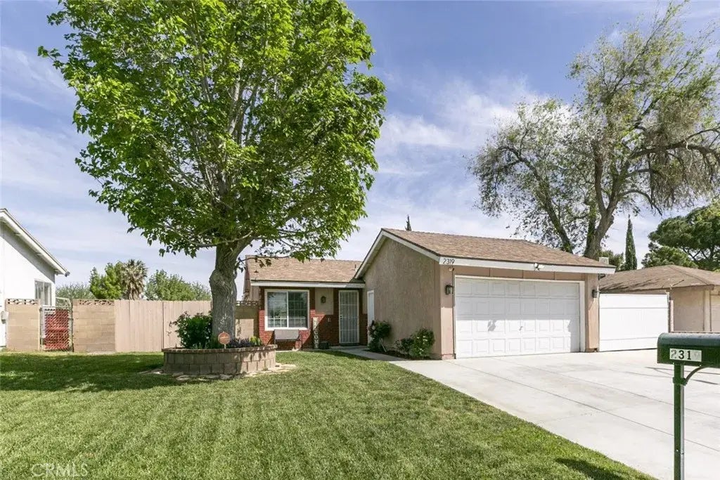 Charming and move-in ready, this beautifully updated 2-bedroom, 1-bath home offers 792 square feet of comfortable living in the heart of Lancaster near Antelope Valley College. Thoughtfully upgraded throughout, the residence features an open-concept living and dining area filled with natural light, leading into a modern kitchen with sleek granite countertops, stainless steel appliances, and soft gray cabinetry. The bathroom is stylishly remodeled with a marble-topped vanity, designer tile, and a stone-accented shower floor for a touch of spa-like luxury. Both bedrooms offer ceiling fans, ample closet space, and a cozy atmosphere for rest or productivity. Additional highlights include laminate and carpet flooring, recessed lighting, dual-pane windows with new blinds, an AC unit that has had maintenance, and a modern color palette freshly painted throughout the inside of the house. Outside, enjoy a spacious backyard with a covered patio and new fencing in the dog run/RV with a gate where the AC unit isperfect for entertaining, play, or future expansion. The front yard is beautifully landscaped with a lush lawn and mature tree, and the attached two-car garage offers convenience and storage.