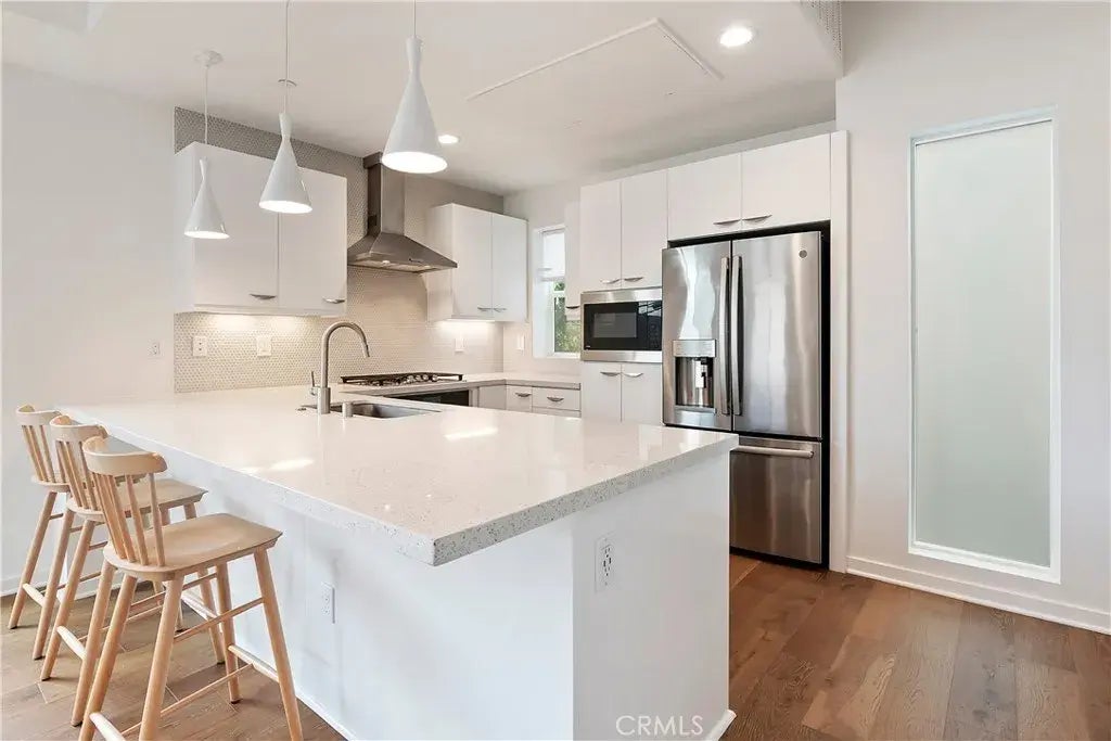 PRICE REDUCTION...Modern Corner Home in Prime Urban NOHO Location! Experience the best of city living at "Blu," a sleek 2019-built community of modern single-family homes in the heart of North Hollywood. This private corner unit is one of the largest in the development, featuring an oversized balcony, abundant natural light, and upscale finishes including custom window treatments from The Shade Store. Located just steps from the vibrant NOHO Arts District, this home puts you within easy walking distance of buzzing bars, trendy restaurants and local cafes. The main level includes a bedroom with ensuite bath and direct access to an EV-ready two-car garage. Upstairs, the open-concept kitchen, living, and dining area features stainless steel appliances, quartz countertops, custom pantry pull-outs, and opens to a generous outdoor space perfect for morning space or relaxing after a night out. The upper level offers two ensuite bedrooms, including a primary suite with a dual-sink vanity and designer lighting. Cap it all off with a private rooftop deck boasting wood tiles, Edison lights, and sweeping views of the mountains and city your own urban retreat. Modern, stylish, and move-in ready all just a short stroll to the best of NOHO nightlife and dining!