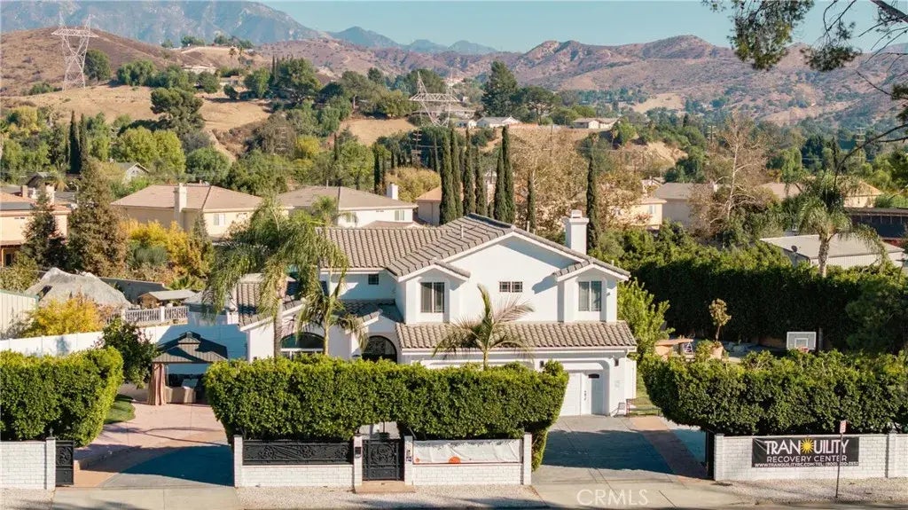 Fully Turnkey LICENSED REHAB Opportunity! Seize this rare chance to acquire a fully built-out, licensed 6-bed detox and residential substance abuse facility with real estate included. Skip the long approval and build-out delaysthis is ready to operate and generate reviews right away. The owners are also in the process of securing permits for a 1,200 sq. ft. ADU that will allow for six additional beds, with potential to add a junior ADU for even more capacity and revenue. Nestled on over acre, this private two-story property is completely enclosed and features a dramatic 12+ ft. double circular driveway with electric gates. Brick perimeter walls topped with vinyl fencing and lush Ficus trees provide ultimate privacy. The open floor plan includes 5 bedrooms and 4 bathrooms. Enter through a 20 ft. foyer with ornate wrought iron stair railings. The living room offers a wood/gas fireplace; the dining and family rooms enjoy high ceilings and dimmable recessed lighting. The kitchen features cherry cabinetry, granite counters, a large island, and travertine floors. Downstairs has 1 bedroom and bathideal for an office or guest spaceplus a separate laundry room. Upstairs, the master suite offers a spa tub, large shower, dual vanities, and a walk-in closet. Three more oversized bedrooms provide stunning views. The 3-car garage is currently converted into an office, full bath, and theater room. Enjoy a resort-style pool and jacuzzi with built-in seating and a swim-up bar, plus a guitar-shaped BBQ. Additional features include dual-zone A/C, security cameras, motion lights, sprinklers,