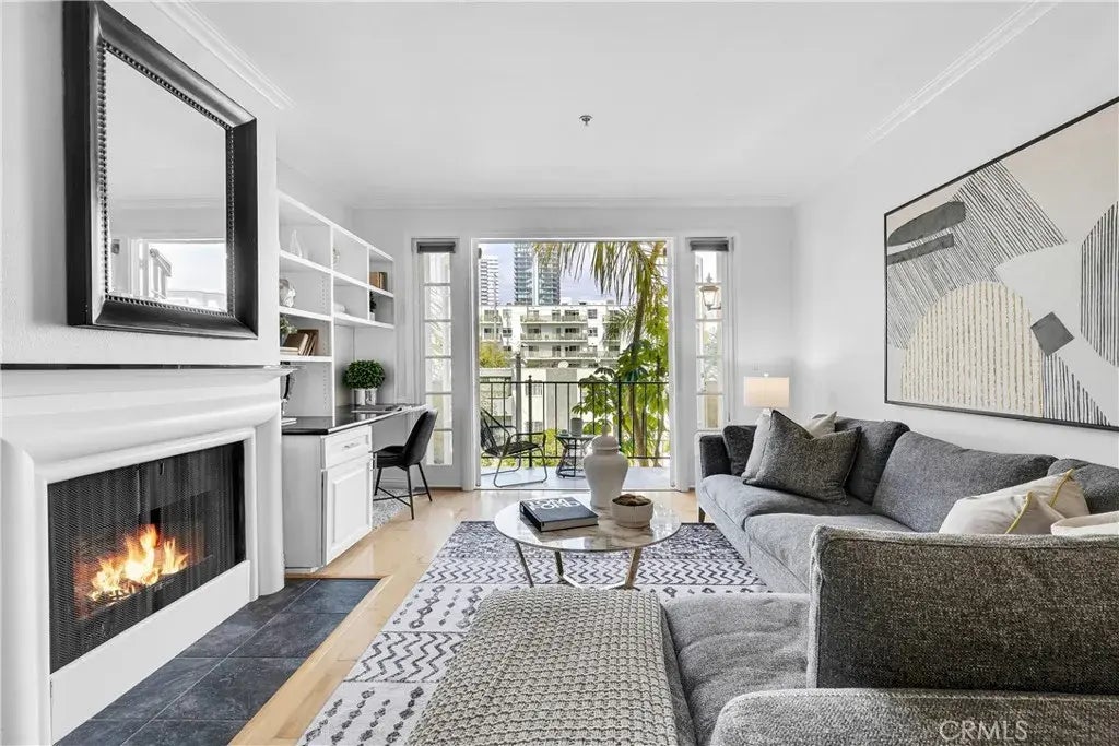 Experience the very best of Westside living in this Brentwood- and Santa Monica-adjacent, stunning single-level front-facing condominium nestled in a small, intimate complexcentrally located near popular neighborhood favorites and just minutes from the 405, 101, and 10 freeways for the perfect blend of lifestyle and convenience. A secure courtyard entryframed by lush, tranquil landscapingsets the tone for this peaceful retreat, while controlled access to both the building and elevator ensures privacy and peace of mind. The elevator opens just steps from your front door, and two assigned tandem garage spaces near the elevator make coming and going effortless. The lovely living room features fresh paint, hardwood floors, and an inviting gas fireplace flanked by a beautiful built-in desk and custom shelvingcreating the perfect backdrop for relaxation, work, or entertaining. French doors lead to a sun-drenched balconyideal for morning coffee or evening cocktails. The updated kitchen boasts granite countertops, a tray ceiling, ample cabinetry, and stainless-steel appliances, plus a convenient breakfast barperfect for casual dining or gathering with friends. Both bedroom suites feature brand-new carpet, exceptional closet space, and spacious en-suite bathrooms with dual vanities. Elegant crown moldings throughout lend a touch of sophistication, while modern comforts like central air & heat controlled by a Nest thermostat and an in-unit washer/dryer ensure everyday ease. Additional highlights include a separate guest garage, a large private storage closet, an intercom entry system