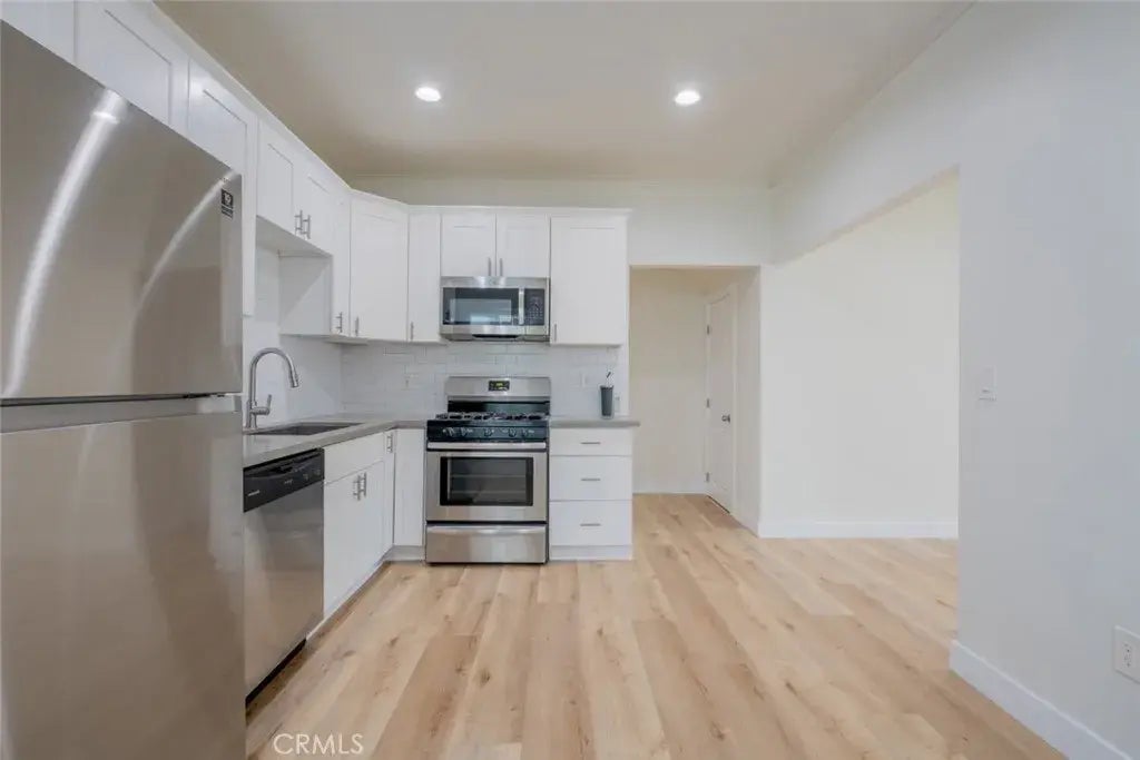 Nestled in Pasadena, this property is a spacious 2 bedroom, 1 bathroom unit available for lease. Inside, you will find fresh paint and new flooring accented by baseboard moldings, high ceilings with recessed lighting and crown moldings, as well as a washer and dryer in the unit. Enjoy prepping meals in the sleek kitchen featuring quartz countertops, soft shaker cabinets, a spice rack, stainless steel appliances, and a large stainless steel under mount sink. The bathroom is complete with a quartz countertop and new tile flooring. Both bedrooms offer ceiling fan light fixtures, ample closet space, and plenty of natural light. This lease also includes a 1 car detached garage and a second tandem parking spot, along with a small private outdoor space perfect for seating or relaxing. Charming yet cozy, the building includes just four total units and is located close to the freeway, PCC, Caltech, Old Town Pasadena, and more.