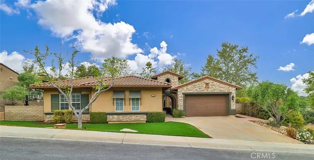 Step inside this beautiful single story gated, 3 car garage home built in 2005 in the Novella community of Thousand Oaks. The property sits on a 1/2 acre lot and features over 3,000 square feet of living space. The interior boasts beautiful 15 foot ceilings along with Italian hardwood flooring. The open concept is great for entertaining and flows nicely into the large living room. The kitchen is beautiful with white subway tile backsplash and granite countertops. The master bedroom is oversized and the plantation shutters let in an abundance of natural light. The primary bath features dual sinks, his and hers walk in closets, and large tub. French doors lead you to the outside of the home where you will find custom built in BBQ, large turf area, sports court, putting green, and lush landscaping. The backyard and large lot are perfect for having friends and family over and tons of room to add a pool if desired. The 3 car garage has epoxy flooring, storage racks, and an electric car charger. This home is in meticulous condition and will not disappoint.
