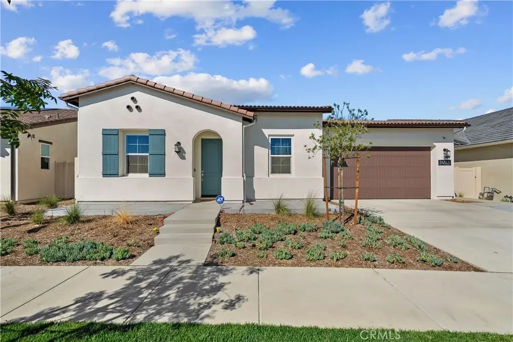 Beautiful Valencia Home! Elegant Resort Style living in a gated 55+ community. Built in 2024, this well-manicured Estrada 3 home offers an open floor plan with 3 bedrooms, plus an office, 3.5 bathrooms with over 2,530 square feet of ample living space. There are many features which include quality vinyl flooring, high ceilings, custom 4 panel slider doors that provide indoor outdoor access for a relaxed and comfort living, also great for entertaining. This amazing home offers a Chef's kitchen with stainless steel appliances, 6 burner gas stove with integrated griddle on the side, modern countertops, plenty of cabinetry, a long dry bar, and an island with sink and seating area that opens to the family room, recessed lighting, storage space and more. Off of the kitchen is a large walk-in pantry with custom wood shelving. Across the pantry is the spacious laundry room with plenty of counter space and more storage space. All bedrooms have ceiling fans/light fixtures. Primary bedroom has a large walk-in closet and sliding glass doors that lead to the patio. Inside the private ensuite is the primary bathroom equipped with a double sink vanity, large walk-in shower with bench and walk-in closet. There is Central AC and Heating, ceiling fans, decorative lighting and chandeliers throughout this home and a tankless water heater. The backyard is equipped with a custom built in bar-b-que grill with a sink, covered patio, concrete hardscape throughout and firepit, perfect for your gatherings and entertaining. The Solar Panels are owned!. There is a private 2-car attached garage with dir