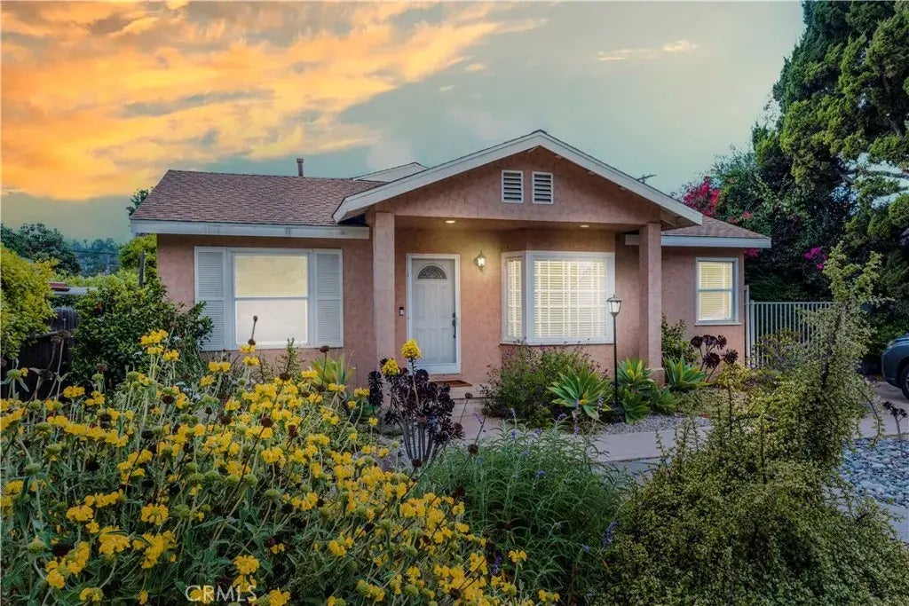 Look No Further! This home is priced to sell, and very well maintained. Popular floorpan with primary bedroom on one side and two other spacious bedrooms on the other side of this single story home. One bedroom enlarged. Features: light and bright living room with decorative windows; 2-way fireplace between Dining Room and Family Room; roomy kitchen with white tile countertops; no carpet- wood flooring; two A/C Units; roof about 3 years old; two water heaters. Two-car garage converted to an office, workout room - you decide. Convenient long driveway for company or your extra cars. Relax and enjoy the luscious green backyard with fruit trees from your large wood patio deck.