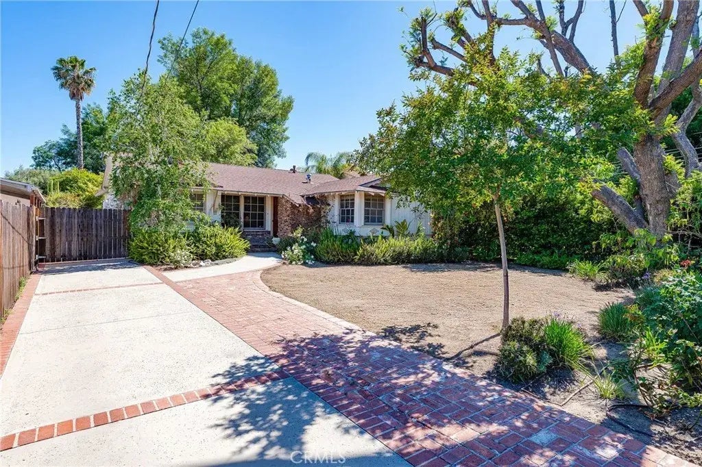Walnut Acres single story classic ranch home located on a 14,000+ SF expansive lot almost 300 feet deep with detached 2-car garage and additional approx. 285 SF office/recreation room ideal for potential ADU conversion. Offered for the first time in almost 40 years, the property offers a multitude of options - live in the home as-is or customize to your liking by expanding the footprint or building new. The home is set back from the street with privacy hedging and large front yard with long double gated driveway ideal for multiple cars/RV that leads back to the 2-car detached garage. A covered front porch with brick siding greets you before entering. Step inside to find an entry with coat closet that opens to the large central living room with wood beamed ceiling, wood mantled white brick fireplace, wood product walls with scalloped crown molding, picture windows, and real hardwood floors found throughout. A separate formal dining room has high vaulted ceiling, direct kitchen access, and French doors that open to the yard. The upgraded kitchen boasts granite countertops and backsplash, stainless appliances with double ovens, separate breakfast room, and laundry space. There are three bedrooms including the primary which has two closets and cozy window seat with bench storage. A spacious hall bathroom has large vanity with makeup counter and bath tub with shower. There is a second bathroom with walk-in shower. The sprawling, beautifully landscaped and private entertainers backyard boasts oversized patio with BBQ center perfect for outdoor dining, gated swimming pool, detache