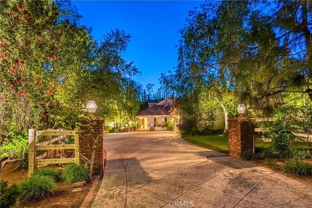 Welcome to your own slice of paradisetucked away on a full acre of natural beauty in Bell Canyon. This one-story ranch-style home blends comfort, space, and laid-back luxury, with room to relax, entertain, and truly enjoy the outdoors. From the moment you arrive, the private drive and quiet setting set the tone. Step through double glass doors into a warm and inviting living room, complete with built-in shelves and a cozy fireplace. The dining room feels grand but welcoming, with a stylish tray ceiling, marble fireplace, and statement chandelierplus easy access to the kitchen and built-in bar, perfect for entertaining. Need a quiet spot to work or read? Theres a dedicated office just off the entry with double doors for privacy. The kitchen overlooks the backyard and pool, and comes fully equipped with a Sub-Zero fridge, double ovens, a sunny breakfast nook, bay window, and a built-in china cabinet. Nearby, you'll find a laundry area and private guest or staff quarters with its own bath. Down the hall you will find the spacious primary suite with walk-in closets, a beautiful bathroom, its own fireplace, a built-in bar, and French doors that open to a private deck. The secondary bedrooms are roomy, with one offering its own en-suite bath. At the heart of the home is a huge family room with wood-beamed ceilings, a stone fireplace, built-ins, and a sliding door that leads out to the backyard. And what a backyard it isdesigned for fun and relaxation. Youll find a pool and spa, built-in BBQ, large patio, a mini barn for extra storage, and even a putting green from days past. The