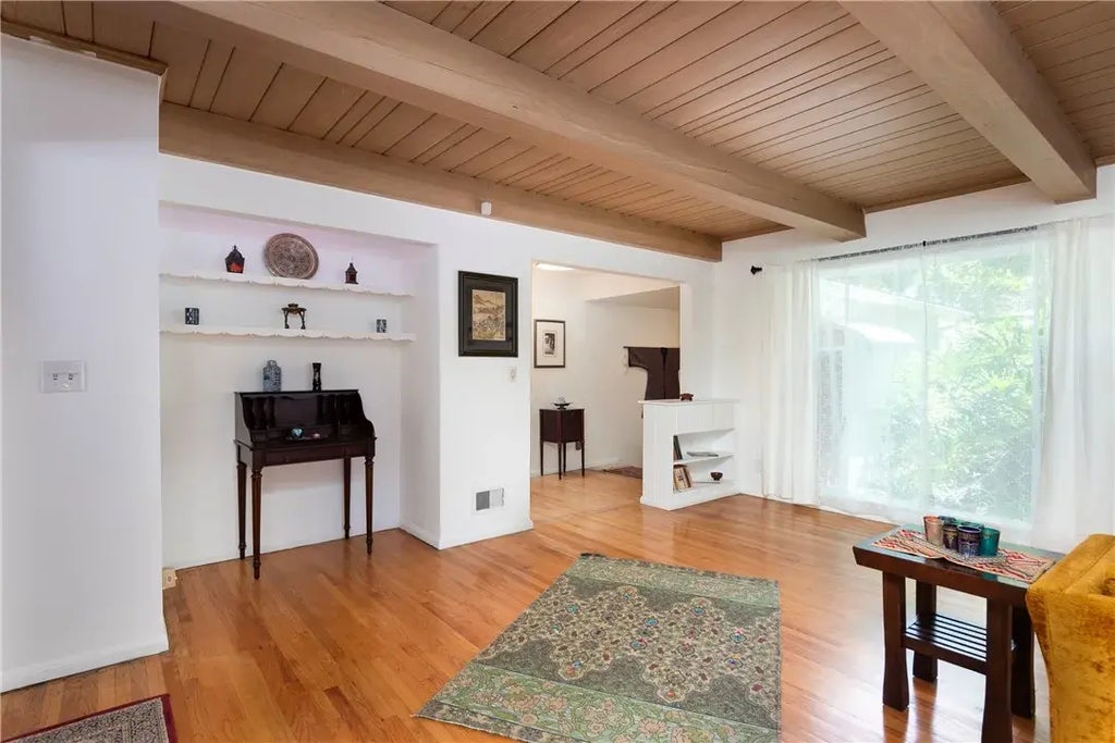 PRIME area Mid Century Bel Air pool home with amazing original charm. A total of 4 bedrooms, 4 bathrooms which includes a detached 1 bed/1 bath rear guest house as an added bonus. Wood floors throughout. Two grand fireplaces, wood beamed ceilings, and central heating. New water heater. Side-by-side washer and dryer in kitchen. Huge amount of closet space throughout as well as a large attic, bar. Large 15,208 sq ft lot goes quite a bit of the hillside in the back of the lot. Tons of mature foliage all around the property creates complete privacy. Two-tiered back yard contains a magical upper terrace behind the sparkling pool with solar cover and detached two-car garage. Rear storage shed. Remote controlled gate and garage door. Alarm system. Covered back patio. Close to everything the west side has to offer.