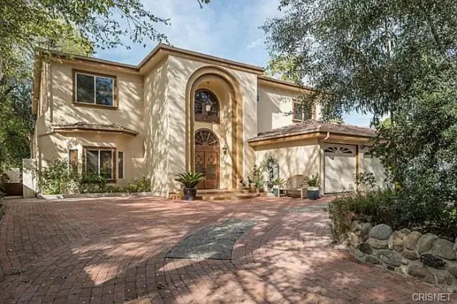 Nestled on a quiet, tree-lined street, this exquisite residence was rebuilt in 2007 and offers over 6,250 sq ft of luxurious living space on a sprawling 22,804 sq ft lot. Designed for comfort and entertaining, the home features 6 spacious bedrooms, 7.5 bathrooms, and a versatile bonus room with two bedrooms and the bonus room conveniently located on the first floor. Step through the grand double-door entry into a dramatic foyer with soaring vaulted ceilings, elegant crown molding, and a spacious formal living room with a marble fireplace. The bright, French-style kitchen is a chef's dream, showcasing custom European Craftsman cabinetry, granite countertops, a large center island, and top-of-the-line Sub-Zero and Wolf appliances. A charming breakfast area overlooks the expansive, flat backyard with a sparkling swimming pool - ideal for hosting guests or enjoying peaceful mornings. Upstairs, a custom antique wrought iron staircase leads to a gallery landing with hardwood flooring and and four deluxe bedrooms. The luxurious primary suite includes a private balcony, dual walk-in closets, and a cozy fireplace. Additional highlights include marble flooring on the first level, an integrated sound system, a fully gated semi-circular driveway, a 3-car garage, and solar panels for energy efficiency. Blending timeless elegance with modern amenities, this exceptional home is a rare opportunity to enjoy premium living in one of Woodland Hills' most desirable neighborhoods. Furnished is negotiable.