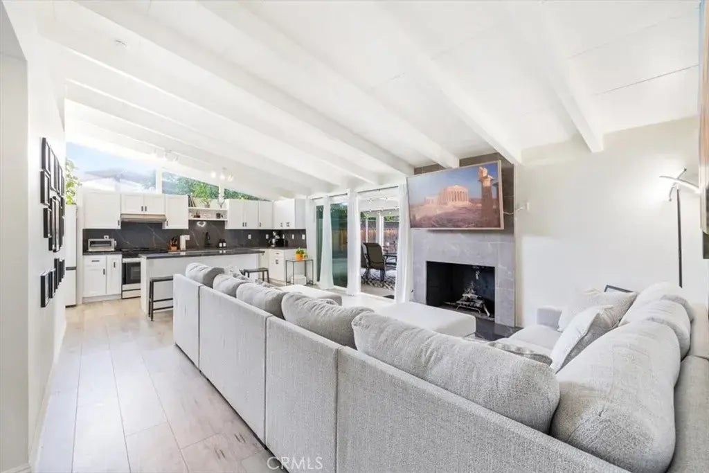 A beautifully remodeled post-and-beam residence situated on a desirable corner lot in the heart of Woodland Hills! This stunning 4-bedroom, 2-bathroom property is a true gem, providing contemporary luxuries while retaining its mid-century modern style. Originally designed by renowned architects Palmer & Krisel, AIA, this classic mid-century modern home blends timeless architecture with thoughtful, modern upgrades. Boasting approximately 1,910 sq ft of living space, home features clean lines, open living areas, and abundant natural light. As you step through the front door, you'll be greeted by an inviting and spacious living area adorned with new gleaming floors and new tiled fireplace. The open floor plan seamlessly moves from the living room to the dining area and kitchen, making it an ideal space for both relaxation and entertaining. The kitchen is a chef's delight, boasting beautiful modern new Samsung appliances, New island, new Ceasarstone countertops which provide durability and a touch of elegance. The dencurrently being used as a home gymadds flexible space ideal for todays lifestyle needs. A matching Samsung washer and dryer are also included for added convenience. Additional upgrades include brand-new dual-pane windows throughout and a freshly painted exterior. Step outside to a spacious backyard oasis complete with a patio and skylightperfect for outdoor dining or relaxing under the stars. HVAC and ducting replaced in 2024. Roof replaced in 2018. New 200 amp electric panel in 2020. Situated on approx 6,858 sq ft lot, the property also offers 2 covered parking sp