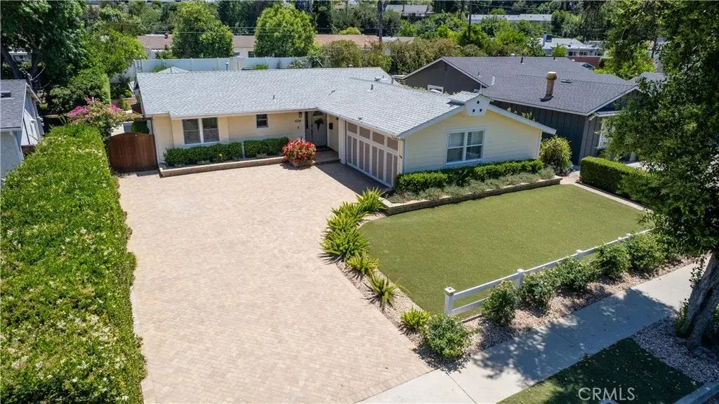 Imagine living in a little piece of Paradise, in the Heart of Woodland Hills! Fall in love with this exquisite and remarkable property, as it will enlighten your passions & bring calm to your world. Now is your opportunity to have all of the amenities you desire for your family and guests alike. We begin your visual tour with the elegant living room, welcoming you with the Beautiful Built-ins, Crown Moldings, Stunning Stone Fireplace with nicely equipped wet Bar, enhancing the splendid view of the Private Backyard through the Picture windowed French Doors. The Front Bedroom, Perfect for a work at home office, or Sound Room, features Acoustic treatments on the walls, built in file cabinets with a TV Credenza and a separate A/C system. The sophisticated Formal Entry and Designer Powder Room will impress your guests. You will be moved as to the amount of thought and intellect that went into designing and building this owner's Castle. A tastefully remodeled Hall Bath is next to the ample roomed 2nd Bedroom and could be second as the perfect Guest Room. The Detail and Design elements brought together for the Primary suite will exemplify the craftsmanship with Vaulted Wood Ceilings, a French Door opening to the rear, hidden T.V., and abundant Walk in Closet, shoe racks, and a gorgeous bathroom. Enjoy preparing a Gourmet dinner in the beautifully updated Kitchen, Custom Cabinetry, top of the line appliances, a separate Pantry with its own wine cooler, Wine rack and practical Breakfast Counter with seats to entertain friends in the adjacent Dining area, or take the party outside an