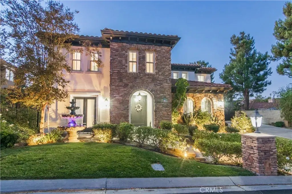 Amazing North Ranch estate located within the gated estates of the Signature Collection. This home boasts nearly 5,300 square feet, 5 bedrooms, 4.5 bathrooms. The private library/den is enhanced with French doors to the exterior sitting area. The home features a grand iron staircase and marble flooring throughout. The elegant formal dining and living room areas are perfect for entertaining with RH chandeliers throughout. The inviting family room and kitchen are the true focal points of this home: The rooms are flooded with natural light, enhanced by the stone fireplace, and opens to the backyard through French doors. The kitchen features custom cabinets, Cortz countertops, an oversize island, and a butler's pantry. Additionally, the kitchen features Viking Appliances (which include warming drawer, wine refrigerator), a large center island, a separate butler pantry and a breakfast nook with Bi-fold doors leading to an entertainer's back yard. The spacious Master Suite includes a separate cozy sitting area with 2 large his and hers walk-in closets and a private balcony with sweeping views! The Master Bath has an oversized jetted spa tub, double vanity, travertine floors, and a large shower with glass enclosures. This estate also features a separate library/office highlighted with built-in shelving and French doors that open to the front garden area. The first-floor 5th bedroom is complete with a private bathroom and walk-in closet. The resort like backyard is complete with a Pebble Tech pool and spa, built in gas BBQ, a covered outdoor pergola living room space with a gas fir