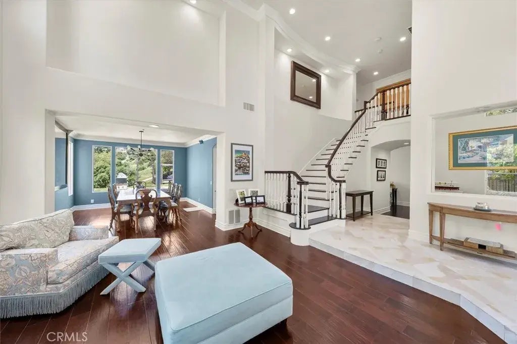 INCREDIBLE VALUE! Tucked away within the prestigious guard-gated enclave of Summit Point Estates, this exquisite five-bedroom, four-and-a-half-bath residence offers the perfect blend of timeless elegance and modern luxury. Situated at the end of a peaceful cul-de-sac, the home welcomes you with a stately double-door entrance that opens to soaring 30-foot ceilings and a bright, thoughtfully designed floor plan ideal for both refined entertaining and everyday living. The grand formal living and dining rooms exude sophistication, seamlessly flowing into a chef's dream kitchenbeautifully appointed with dual center islands, top-of-the-line Thermador appliances, and an abundance of custom French country cabinetry. The adjacent family room, anchored by a cozy gas fireplace, offers a warm and inviting ambiance, while the charming breakfast island provides the perfect spot for casual dining. A well-appointed guest suite with a private bath completes the main level, ideal for visiting family or friends. Upstairs, the expansive primary retreat features a serene sitting area, dual walk-in closets, and a luxurious en-suite bath with double vanities, soaking tub, and separate shower. Three additional bedroomstwo sharing a Jack-and-Jill bath and one with a private en-suiteprovide ample space for family or guests. Walls of glass open to the resort-inspired backyard, where lush landscaping surrounds a sparkling pool and spa, expansive lawn, and covered patiooffering an idyllic setting for entertaining or tranquil relaxation. A finished four-car garage, complete with a 220-volt EV charger, a