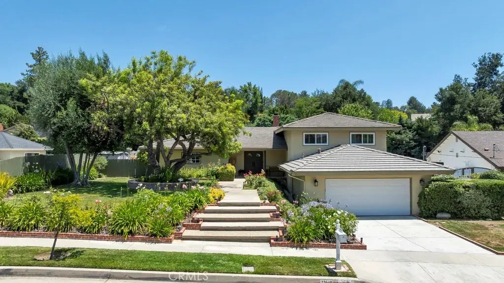 Welcome to 22640 Jameson Drive...an extraordinary five-bedroom, three-bathroom well thought out split-level home, perfectly situated in the highly coveted Mulwood subdivision of Calabasas. Boasting 2,867 square feet of living space on an expansive 18,976 square foot lotone of the largest parcels in Mulwoodthis home is thoughtfully designed for both comfort, style and entertaining all your guests! The homes inviting light and bright layout offers a formal living room with fireplace and doors leading to the backyard, a separate family room with its own fireplace and yard access, and a stylish formal dining room ideal for special occasions. Culinary enthusiasts will be delighted by the beautifully remodeled chefs kitchen, showcasing luxurious stone countertops, abundant cabinetry, a walk-in pantry, charming breakfast nook, built-in wine rack, and a sprawling center island ideal for both entertaining and everyday family life. The high-end appliance package includes a Thor gas range with double oven, Miele dishwasher, LG Studio refrigerator, and moremaking this a dream space for home chefs and entertainers alike. Step outside to enjoy your private park-like oasis complete with a sparkling pool, large grassy yard, fire pit, additional grassy side yard, mature fruit trees, and plenty of space for outdoor living, entertaining or possibly adding an ADU/Guest House or sport court! Additional features include recessed lighting, skylights, an attached two-car garage with direct entry, and a flexible split-level floor plan perfect for multi-generational living. Just moments away from to
