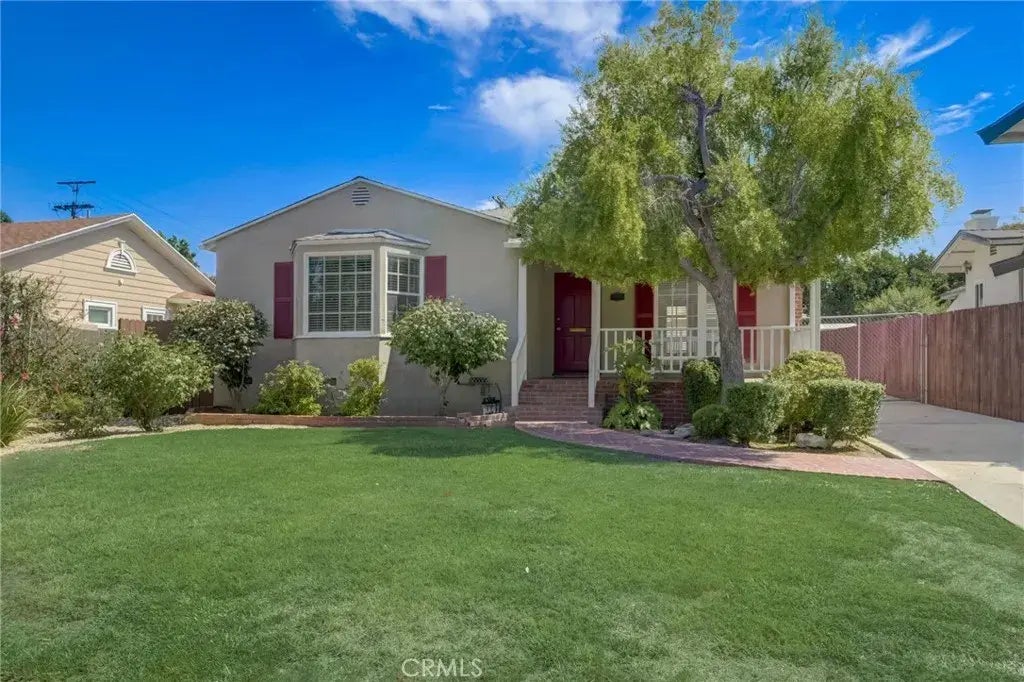 Idyllic curb appeal - complete with a front porch- welcomes you to this charming 2 bedroom home on a quiet street, south of Ventura Blvd and in the Woodland Hills Elementary school district. There are newer laminate floors, a fireplace, central air & heat, an indoor laundry room with extra storage, and a garage. New carpeting in the bedrooms, and both have large spacious closets. The large private yard and covered patio are perfect for dining al fresco on summer nights. Conveniently located near shopping and transportation, and within a couple miles of Topanga Mall and The Village for entertainment and a great restaurant selection. Head south through the canyon to the beach!