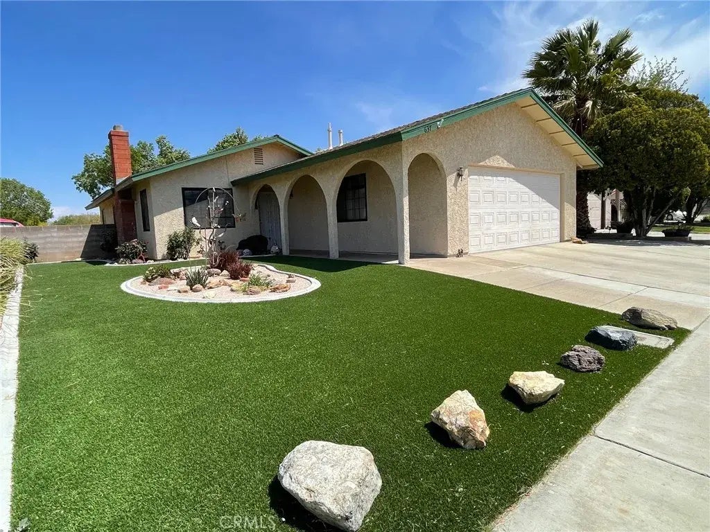 What an adorable home with lots of space for outside living too. As you pull up to the home, notice the beautiful curb appeal with fresh exterior paint and astroturf for low maintenance. Located on a cul de sac in a neighborhood where everyone knows each other, this home has a flowing layout, very large backyard with block walls and covered patio on the side yard. A beautiful breeze moves throughout the home when the doors are open. An ample sized kitchen with breakfast bar and dining room is open to the living room, which has a cozy fireplace. A newer bathtub has been installed for soaking. The solar is leased at $83.58 per month. The washer, dryer and fridge stay with the home. Window screens and blinds have been replaced, the HVAC system has been updated, upgraded and serviced, and there are two turbines on the roof, which helps with cooling.