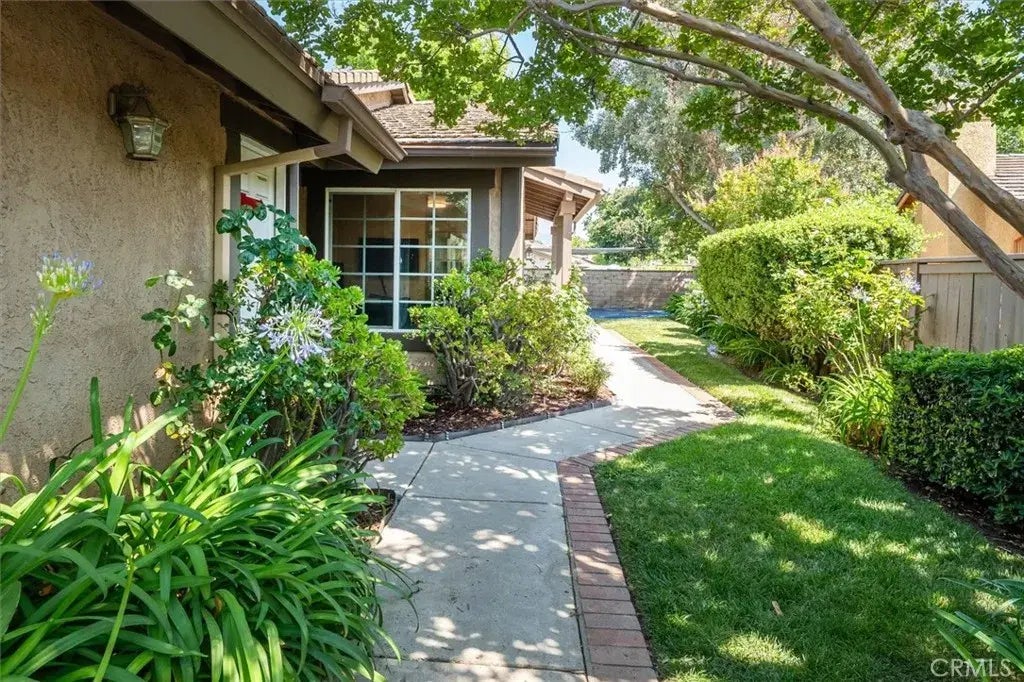 Welcome to this charming and beautifully remodeled single-story home tucked away on a peaceful cul-de-sac in the sought-after Sunrise community of Valencia! This 3-bedroom, 2-bath gem sits on a generously sized lot surrounded by mature trees and lush landscapingyour own private retreat in the heart of town. Step inside and instantly feel at home in the light-filled living room featuring rich hardwood floors, soaring ceilings, and a cozy brick fireplace. The remodeled gourmet kitchen is a true showstopper, boasting an eye-catching coffered ceiling with recessed lighting, custom cabinetry with pull-out shelves, stainless steel appliances, and a spacious island with a breakfast bar. A wall was removed to create the open-concept layout, perfect for entertaining or just spending time with family. Just off the kitchen, a sliding door opens to the inviting backyard complete with a patio for dining under the stars and a large grassy area with mature trees, a perfect space for relaxation and play. The layout is both functional and private, with two bedrooms and a full bath down the hall, and the serene primary suite with its own en-suite bath tucked away at the end. All of this in one of Valencias most desirable locations - just steps from miles of scenic paseos, parks, 4 community pools, and a short distance to Granary Square, the Whole Foods shopping center, and great restaurants and shops. Low HOA and no Mello Roos! This home truly has it all.