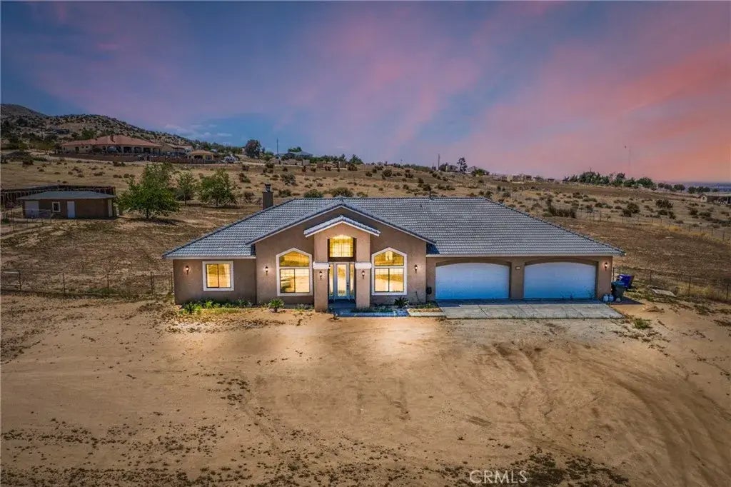 COVETED MARIANA RANCHOS ADJACENT in Apple Valley, with RARE 2.5 ACRE RANCH A-1 zoning (most are 1 acre or less!), Custom Workshop with POWER, 4-Car Garage, and perhaps most importantly a RENOVATED INTERIOR!!! This is the COMPLETE home. From the moment you arrive, its clear this is something special, offering unobstructed 360-degree views of the surrounding mountains by day, and a sparkling valley skyline at night. Step through a grand front entry and into a thoughtfully renovated home where comfort meets style. Inside, new tile flooring, remote-controlled lighting and ceiling fans, and custom French doors with built-in blinds set the tone for quality and attention to detail. The spacious living area flows seamlessly into a stunning kitchen featuring a huge center island, custom pewter-glazed cabinetry, double dishwasher drawers, and a fogged-glass walk-in pantry. The homes layout is as functional as it is elegant. The primary suite offers true retreat vibes with double-door entry, a walk-in, no-door tiled shower with alcove seating, a soaking tub with a dual-sided remote fireplace, and a large walk-in closet. Two additional bedrooms are connected by a Jack-and-Jill bathroom, while a study and separate den provide flexible living or work spaceone even includes a built-in Cannon gun safe. Outdoors, the property continues to impress. In addition to the oversized 4-car garage, youll find a tile-roofed, fully powered workshop, and room for animals, equipment, or future expansion. A horse corral with shelter and auto Lipper system, cross fencing, four double gates (one electric),