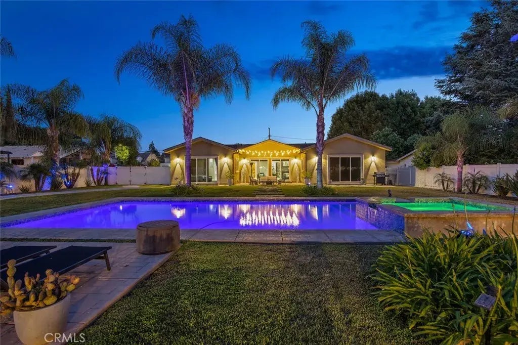 Welcome to your dream home, Sherwood Forest at its finest! This exceptional newer construction (Main House Built in 2015 & Two-Story Guest House Built in 2017) is located on a 28,400 Sq. Ft. lot with professionally landscaped and manicured grounds, and a gorgeous heated pool & spa! The stunning main house offers 5 bedrooms/4.5 baths, while the magnificent two-story guest house offers 3 additional bedrooms & 1.5 baths. Main house features large elegant wrought iron double door entry. Custom stone travertine flooring and custom carpet in the bedrooms. Fabulous kitchen with all upscale appliances, soft close cabinets, built in refrigerator, beautiful granite, custom back splash and granite Center Island opens to the formal dining room. Formal living room with 2-way fireplace to the family room with sliders out to the back yard. Two extra-large primary suites face the beautiful vacation like back yard, each primary room has large closet space and lovely bathrooms. The main house also features remote-controlled blackout drapes, LG washer/dryer, smart NEST dual-zone HVAC, August smart lock entry, and automatic driveway and pedestrian security gates with intercom system. The Large attached garage and circular driveway with parking for 8+ cars (or for RV/Boat). Impressive high ceilings throughout house accented by skylights. The secondary bedrooms are gorgeous with Jack & Jill bathroom. Wait until you experience the back yard & guest house, a tropical paradise akin to a five-star hotel! The fabulous two-story guest house adds 1,600 sq ft of flexible space. The guest house includes