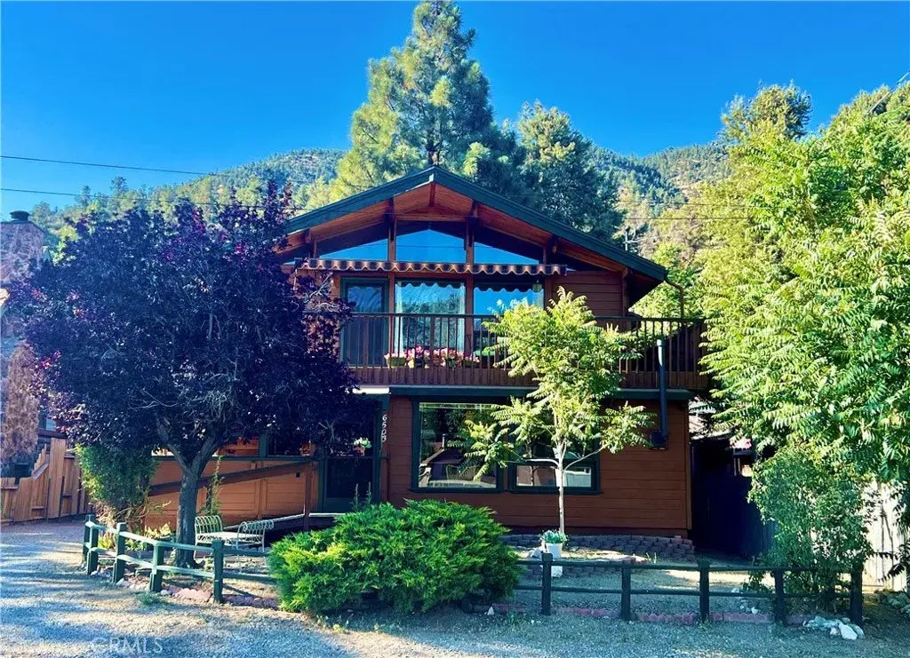 This beautiful Lindal Cedar Home has been well loved and maintained by the original homeowners who built it. Exterior is freshly painted with a new roof. You must see it to truly appreciate the incredible craftsmanship of woodwork, knotty pine ceilings, custom cabinetry, shelves, skylights and expansive windows! As you walk through the doorway into the lower floor you will find a sunlit entry room that would make a great art studio or office. Just inside is an open extra living space with a kitchenette and 3/4 bath. Step down into the sunroom with large windows and custom shelves for a great place to relax during the summer, and the gas fireplace will keep you warm and cozy in the winter. Through the door is a large pantry area that leads to the garage. As you walk up the stairway to the second floor you'll see a built-in book case. The spacious living room has a vaulted knotty pine ceiling, gorgeous windows and glass doors that open to the wraparound deck with retractable awning where you can sit and enjoy the panoramic mountain views and starry nights! The living room opens to the dining area with sliding glass cabinets, breakfast bar and kitchen with custom cabinets and skylight. Just up the hallway is a full bath with skylight, bedroom and primary bedroom with attached bathroom. Located just 40 minutes from Santa Clarita and Bakersfield, in a quaint mountain community with a slower paced lifestyle and 4 seasons of nature. This lovely and unique home in Lake of the Woods is a MUST SEE!!