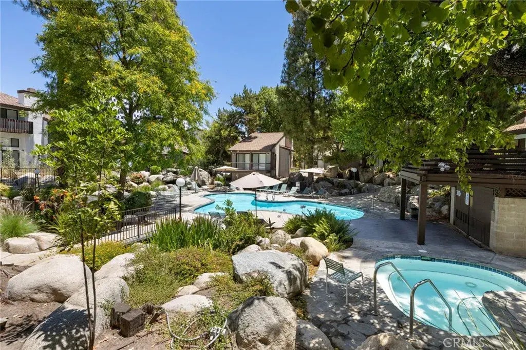 Situated in the heart of thriving Warner Center, this tri-level end-unit townhome offers the perfect blend of tranquility and convenience. Featuring 2 bedrooms and 2 bathrooms, the home is part of a serene, resort-style complex with a sparkling pool & spa, tennis court, and ample guest parking. The top-level primary suite boasts a walk-in closet, en-suite bathroom, and a private balcony. On the middle level, you'll find an open kitchen, a dining area with skylight, and the second bedroom and full bath. The inviting living room features a cozy fireplace and opens to a private front patioperfect for morning coffee or evening relaxation. A private 2-car garage with direct access completes the package. Just minutes from dining, shopping, and entertainment, this townhome offers the best of Woodland Hills living.