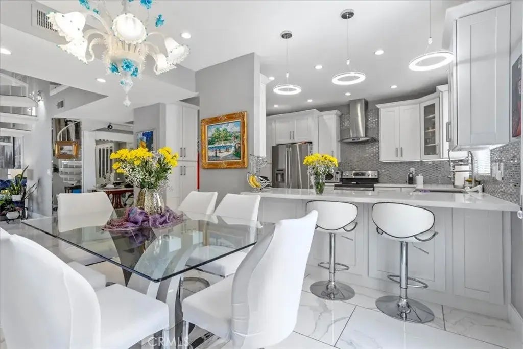 Introducing a completely remodeled 2-bed/2-bath top floor penthouse end unit condo with nearly 2,000 sq ft of impeccably designed living space! Tucked inside a resort-style community in Encino, this updated stunner is the ultimate entertainer paradise. Step into a pristine open floorplan living room with soaring 20-foot ceilings,abundant natural light, fireplace, and a seamless indoor/outdoor flow. The stunning kitchen is outfitted with stainless steel appliances adjacent to a spacious dining area . With in unit washer/dryer, recessed lighting, two balconies, upstairs loft, AND private rooftop deck.... this ideal property is the definition of everyday convenience and versatility. The primary bedroom features a large walk-in closet, private balcony, dual vanity sinks, and modern shower with waterfall showerheads. The upstairs loft is suitable for an extra bedroom or private office space. Adjacent to the loft is a private rooftop deck with breathtaking mountain views of Los Angeles your personal slice of SoCal paradise. Additional amenities at the Encino Spa South Community include a sparkling pool, jacuzzi, sauna, fitness center, and a tranquil courtyardall just footsteps away from Ventura Blvd, the 101 freeway, and some of Encinos best shopping and dining. HOA covers earthquake insurance, water and trash. Unit also provides FOUR PARKING SPACES inside the garage, in addition to plenty of guest parking also. Dont miss this rare blend of size, style, and location in a beautiful neighborhood of Encino!