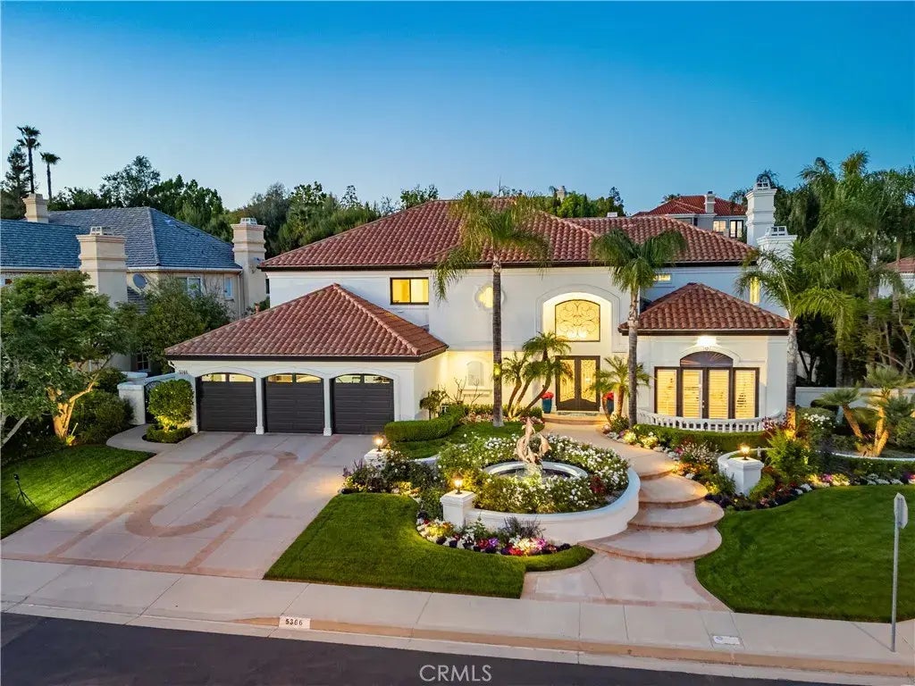Introducing 5366 Collingwood Circle a beautifully light-filled Mediterranean residence ideally situated on a prime lot within the prestigious guard-gated community of Mountain View Estates. With over 6,200 square feet of thoughtfully designed living space, this 6-bedroom, 7.5-bathroom home offers exceptional indoor-outdoor living and a layout that welcomes both everyday life and special gatherings. Privately located in the heart of the neighborhood, the home enjoys abundant natural light and a truly special backyard retreat. A custom iron double door opens to a dramatic grand entry with soaring 20 ft. ceilings, marble floors, and a sweeping staircase. Throughout much of the home, wide-plank French Oak flooring adds warmth and character to the expansive interior. The formal living room is refined yet inviting, with coffered ceilings, a leathered marble fireplace, Juliet balcony, and plantation shutters. The spacious family room features a polished marble hearth, custom built-ins, and a full barcreating a natural hub for entertaining. At the center of the home is an impressive, updated kitchen equipped with a 6-burner Wolf range with griddle and grill, Sub-Zero and Miele appliances, a walk-in pantry, and a large island with generous seating. Glass-front cabinetry with interior lighting, a sunny breakfast area, and a butlers pantry leading to the formal dining room enhances the flow. French doors open to a beautifully landscaped backyard designed to be enjoyed year-round. A resort-style pool with cascading waterfalls, a stainless Coleman BBQ island, and multiple covered patio
